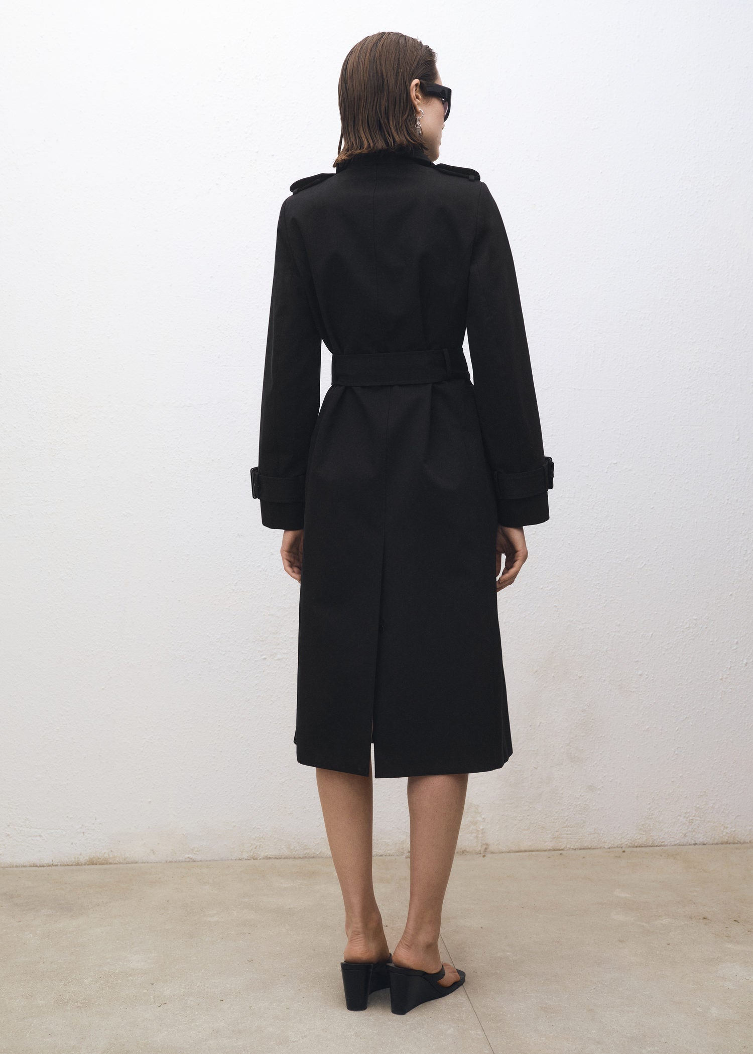 Abertura posterior en el bajo,Cuello pico con solapa,Manga larga con trabillas,Cierre de doble botonadura,Colección Selection,Trabillas en la cintura,Cinturón con cierre de hebilla,Solapas con muesca,Dos bolsillos laterales,Trabillas en los hombros,Diseño recto,100% Algodón,Cinturón desmontable,Diseño largo,Forro interior