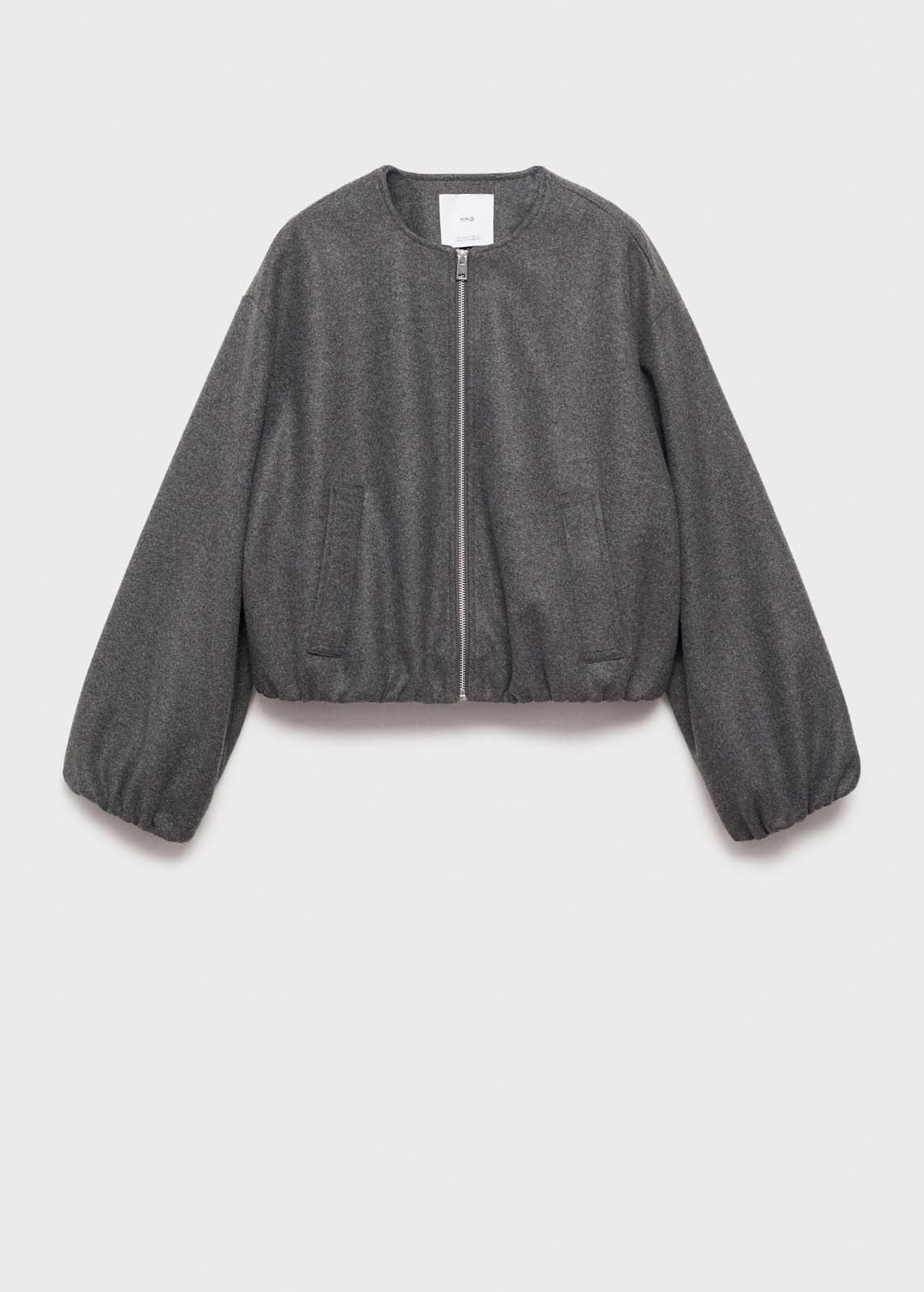 Cuello redondo,Tejido ligero,Dos bolsillos laterales,Cierre de cremallera en la parte delantera,Detalle fruncido en el bajo,Diseño oversize,Manga larga con puños elásticos y fruncidos,Estilo bomber