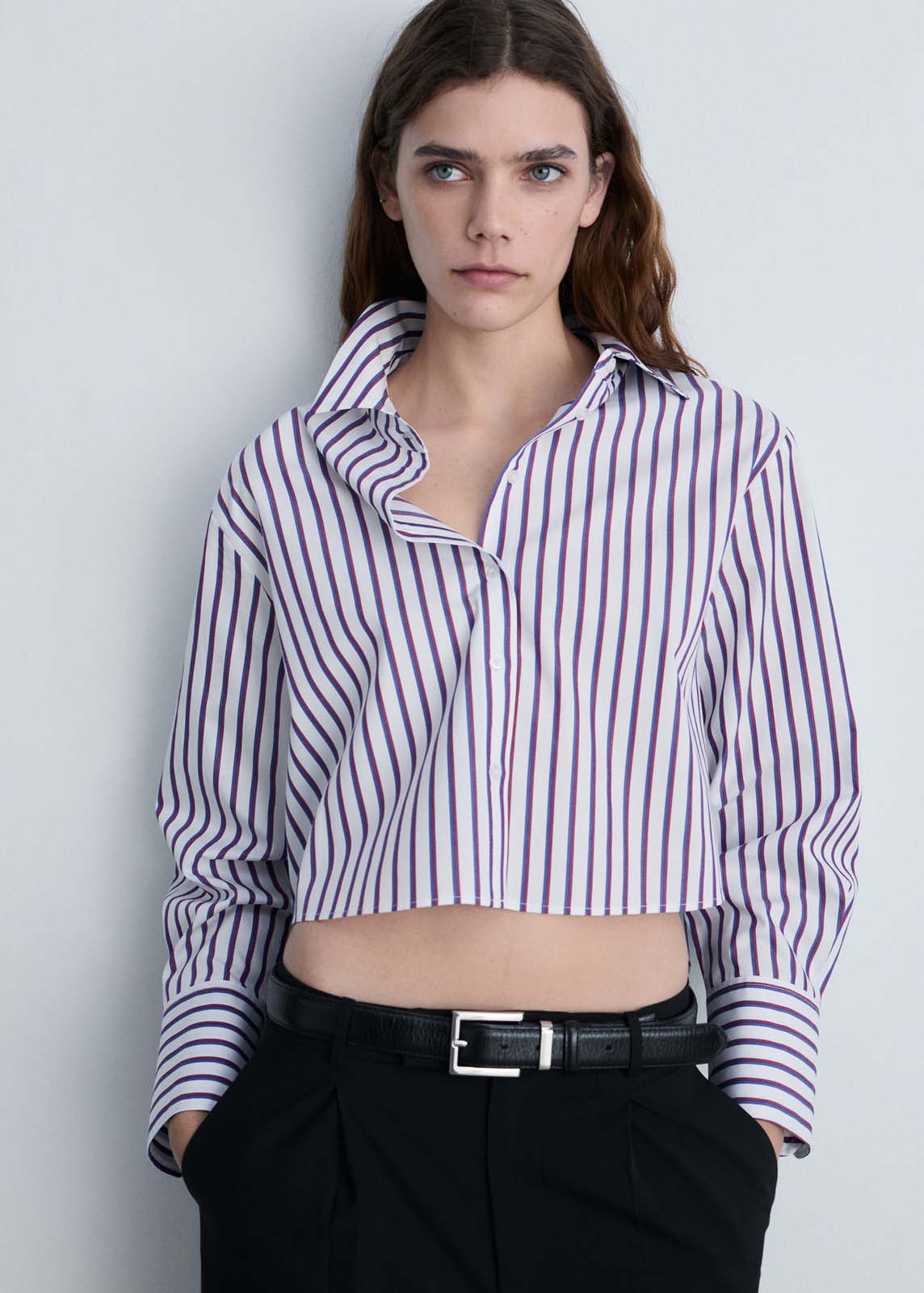 Estampado de rayas,Cierre de botones en la parte delantera,Diseño crop,Regular fit,Manga larga con puños abotonados,Cuello camisero,Tejido mezcla de algodón