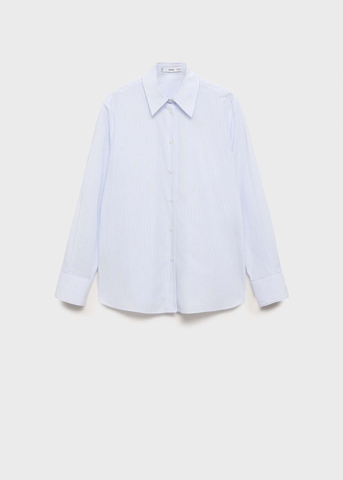 Estampado de rayas,Cierre de botones en la parte delantera,Tejido popelín de algodón,Manga larga con puños abotonados,Diseño recto,Cuello camisero,Tejido mezcla algodón y lyocell