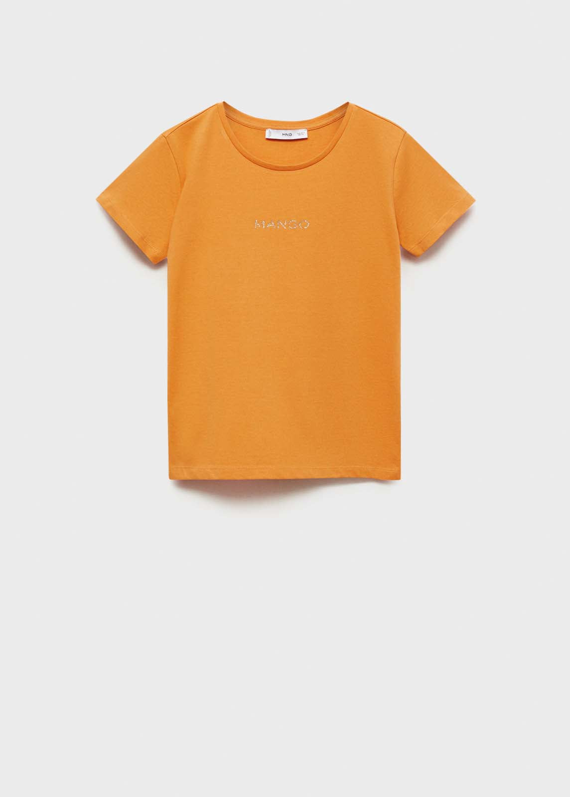 Manga corta,Cuello redondo,Logo Mango estampado,Diseño recto,Detalle de logo,Tejido 100% algodón