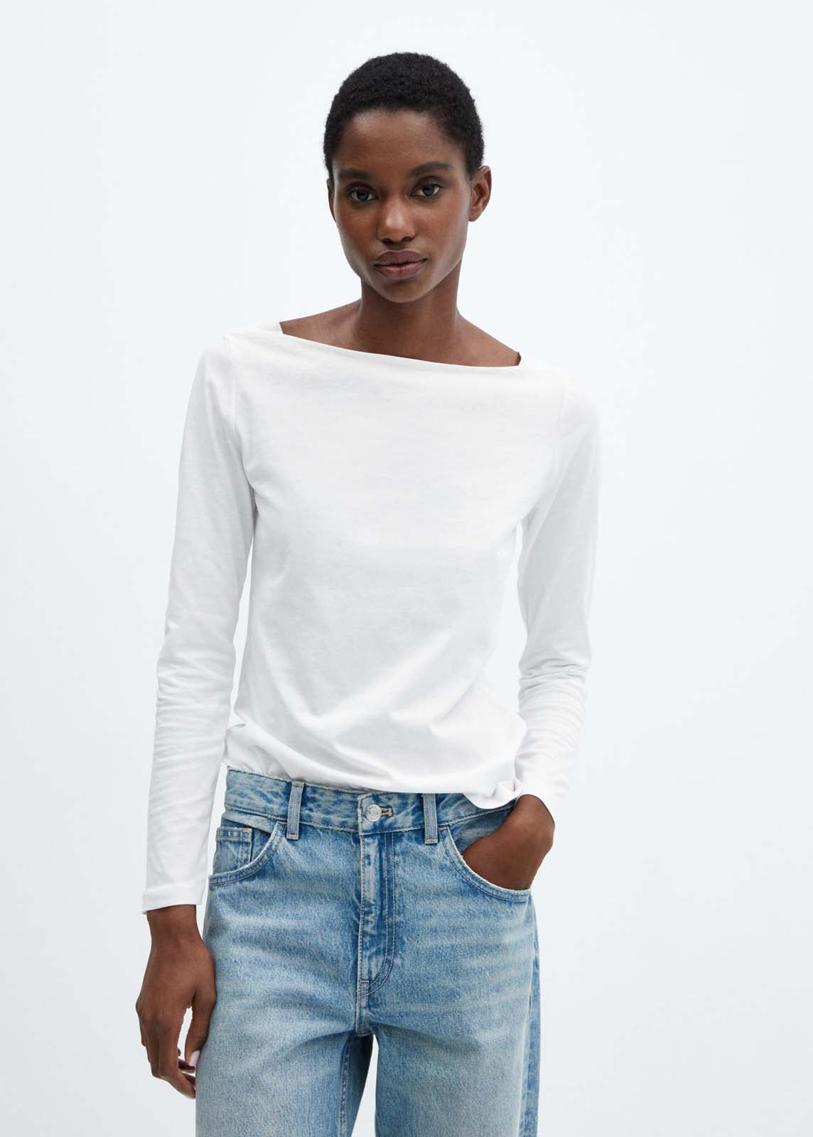 Manga larga,Cuello barco,Slim fit,Diseño recto,Tejido 100% algodón