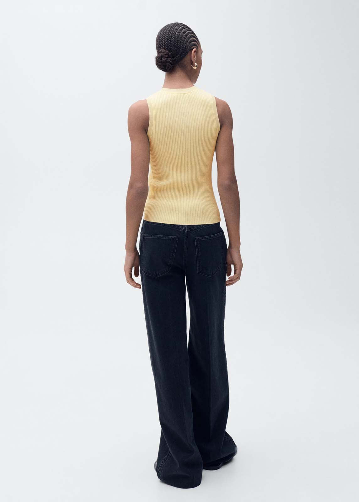 Tejido de punto de canalé,Tejido mezcla de lino,Cuello redondo,Diseño recto,Sin mangas