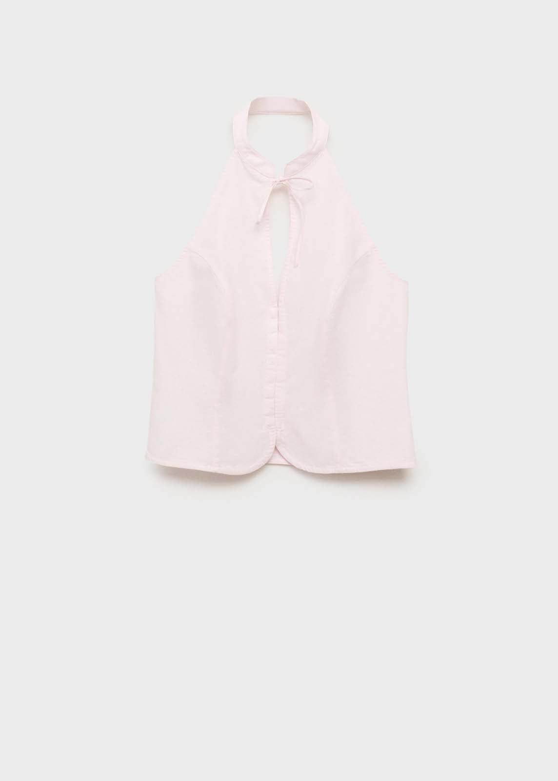 Abertura en el cuello con cierre de lazo,Tejido mezcla de algodón y lino,Total look,Cuello halter,Diseño entallado