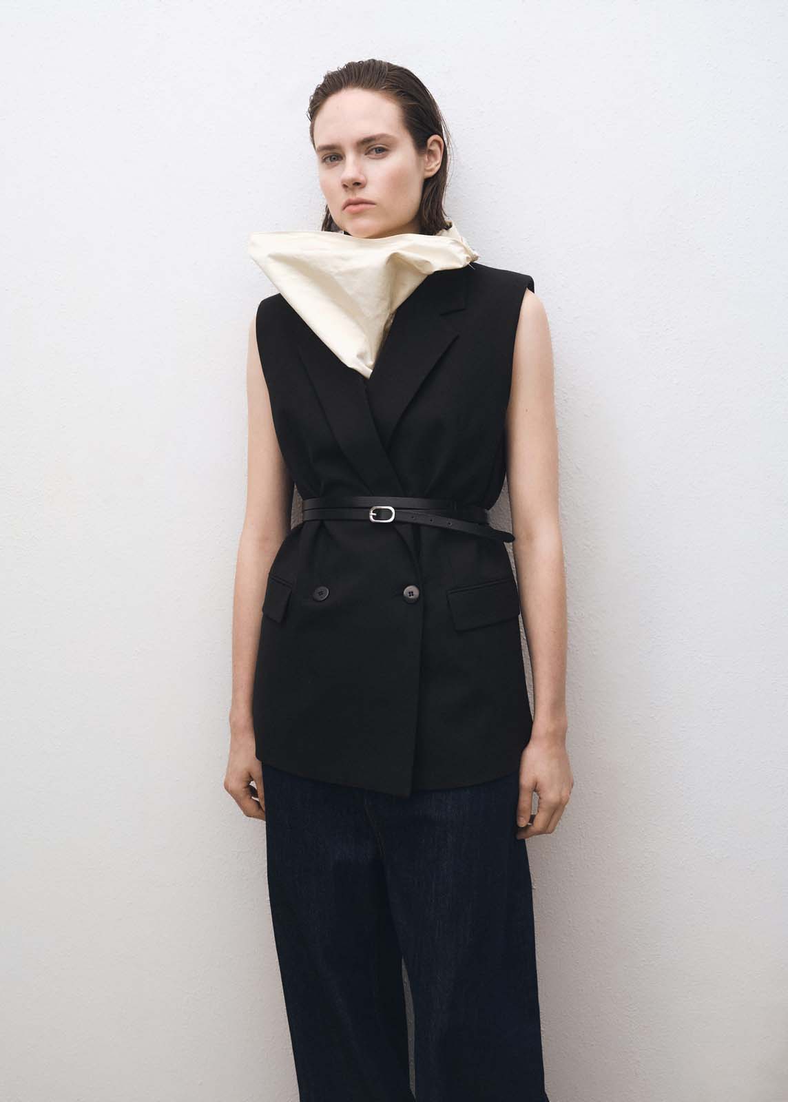 Cuello pico con solapa,Tejido mezcla de lana,Cierre de doble botonadura,Colección Selection,Solapas con muesca,Dos bolsillos de solapa laterales,Diseño recto,Diseño midi,Sin mangas,Forro interior