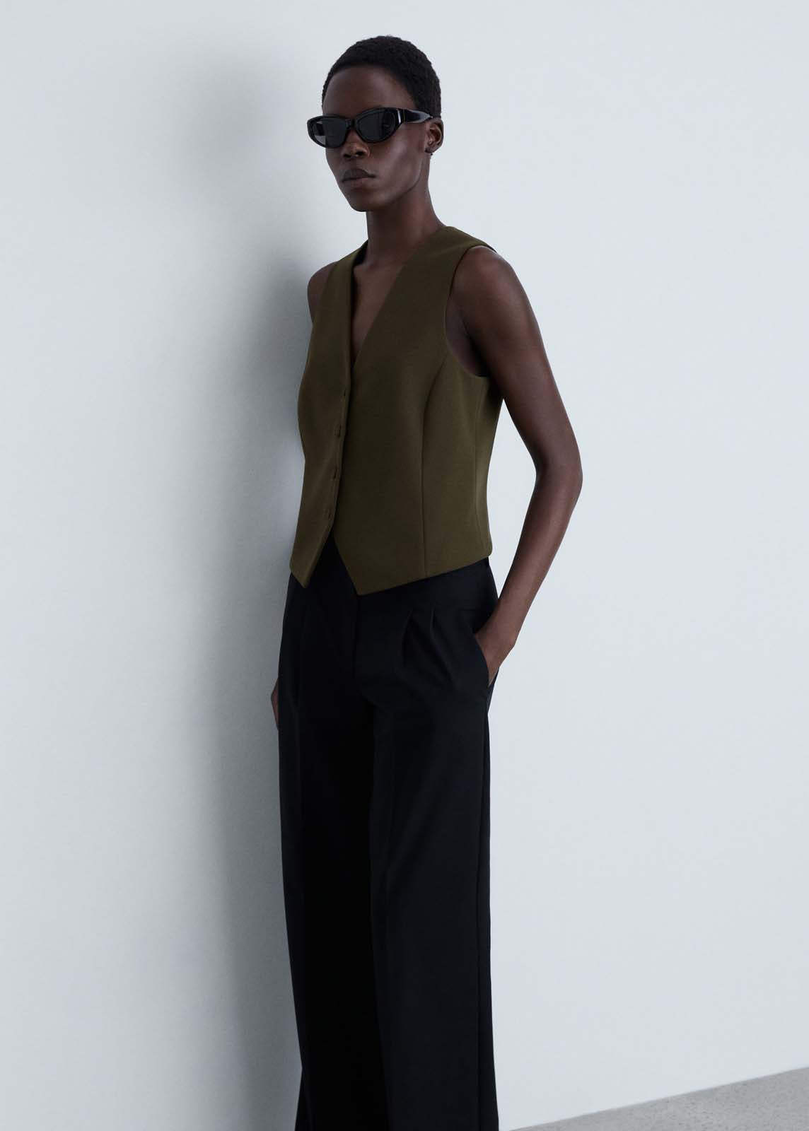 Cuello pico,Diseño crop,Tejido ligero,Disponible Plus,Total look,Diseño recto,Cierre delantero con botones,Forro interior