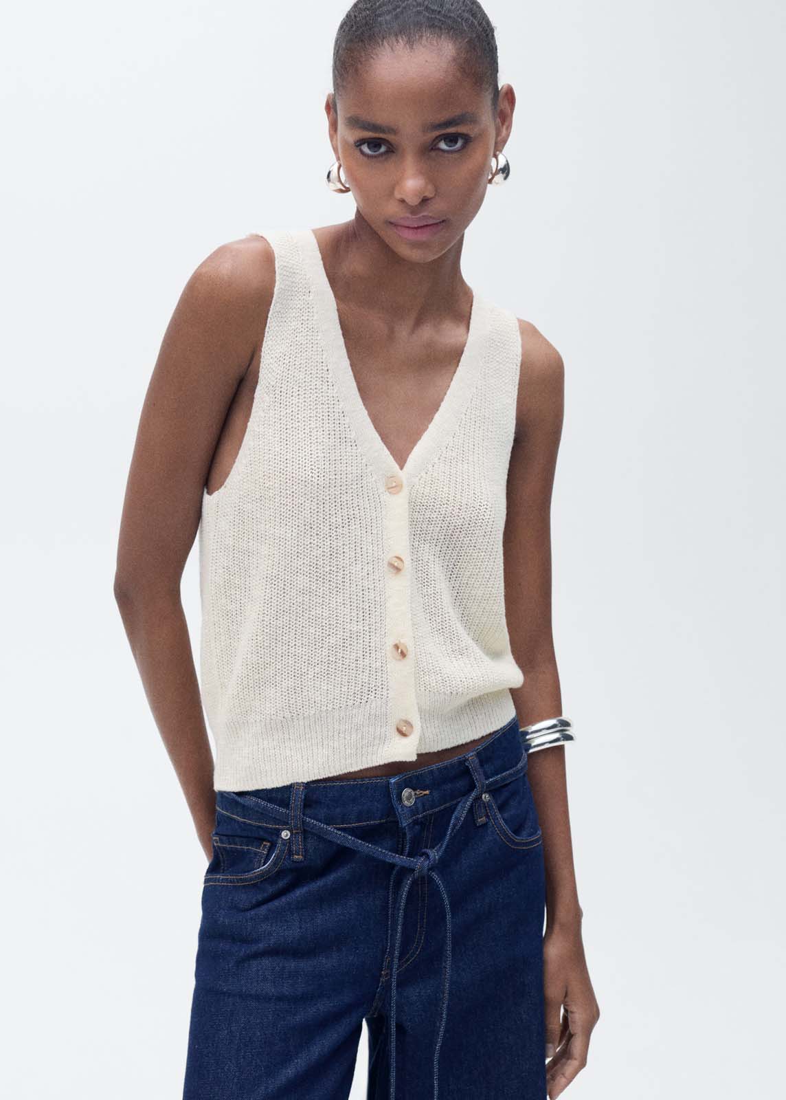 Tejido de punto grueso,Tirantes anchos,Disponible Plus,Diseño recto,Cuello de pico,Sin mangas,Cierre delantero con botones