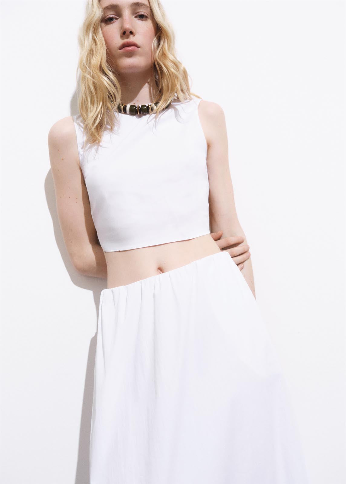 Cintura con goma elástica,Tiro medio,Sin cierre,Diseño evasé,Total look,Diseño largo,Tejido de algodón