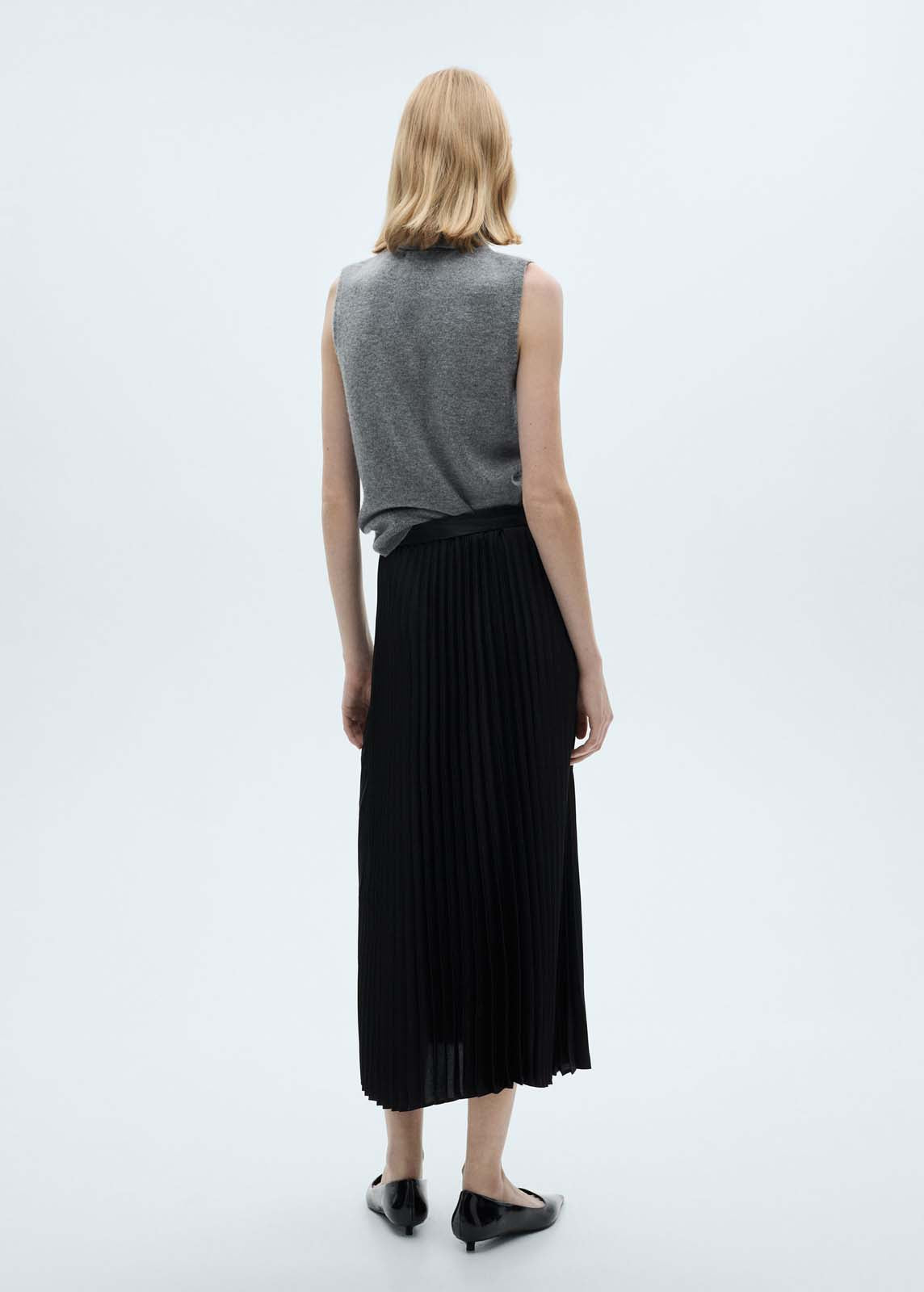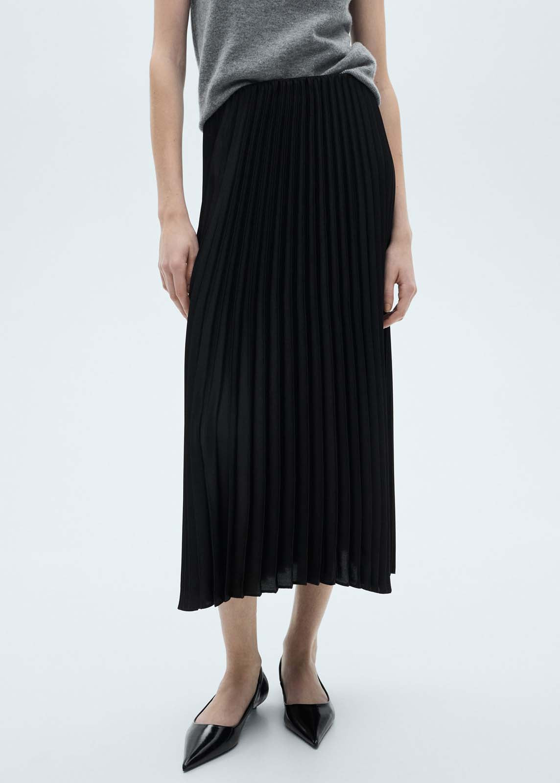 Colección fiesta y ceremonia,Tejido plisado,Cintura con goma elástica,Tiro medio,Goma elástica,Sin cierre,Tejido satinado,Tejido ligero,Diseño evasé,Sin forro interior,Diseño midi