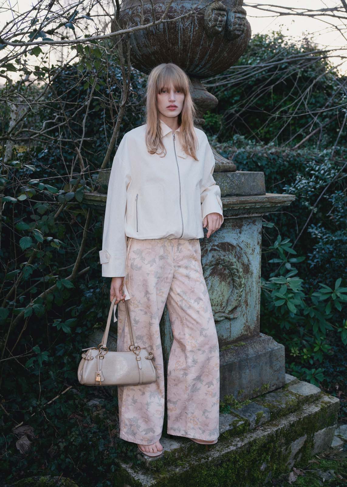 Diseño wideleg,Trabillas,Cierre delantero de cremallera y botón,Cinco bolsillos,Estampado floral,Tejido de algodón estilo tejano vaquero,Diseño largo,Tiro alto