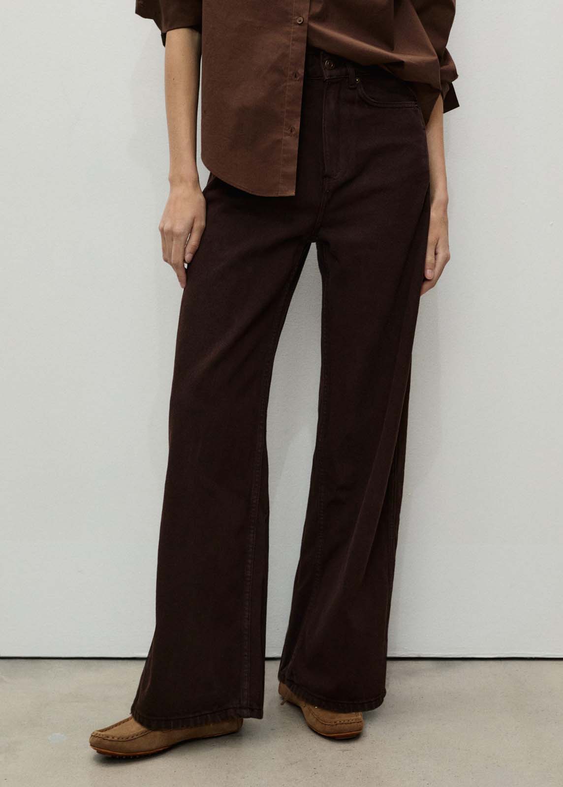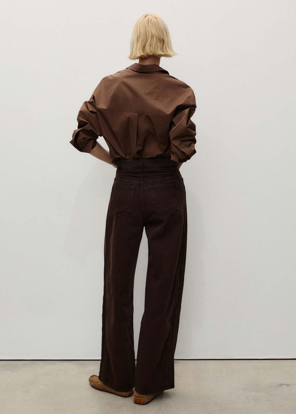Trabillas,Cierre delantero de cremallera y botón,Cinco bolsillos,Diseño balloon,Tejido de algodón estilo tejano vaquero,Diseño largo,Tiro alto