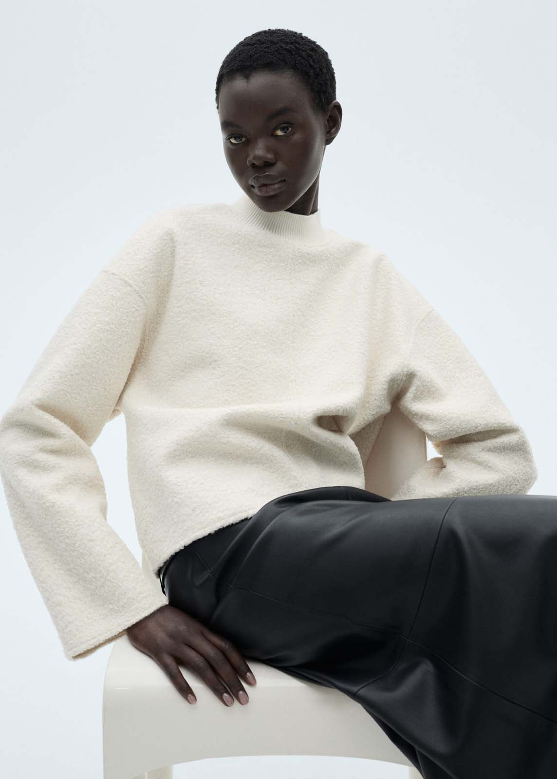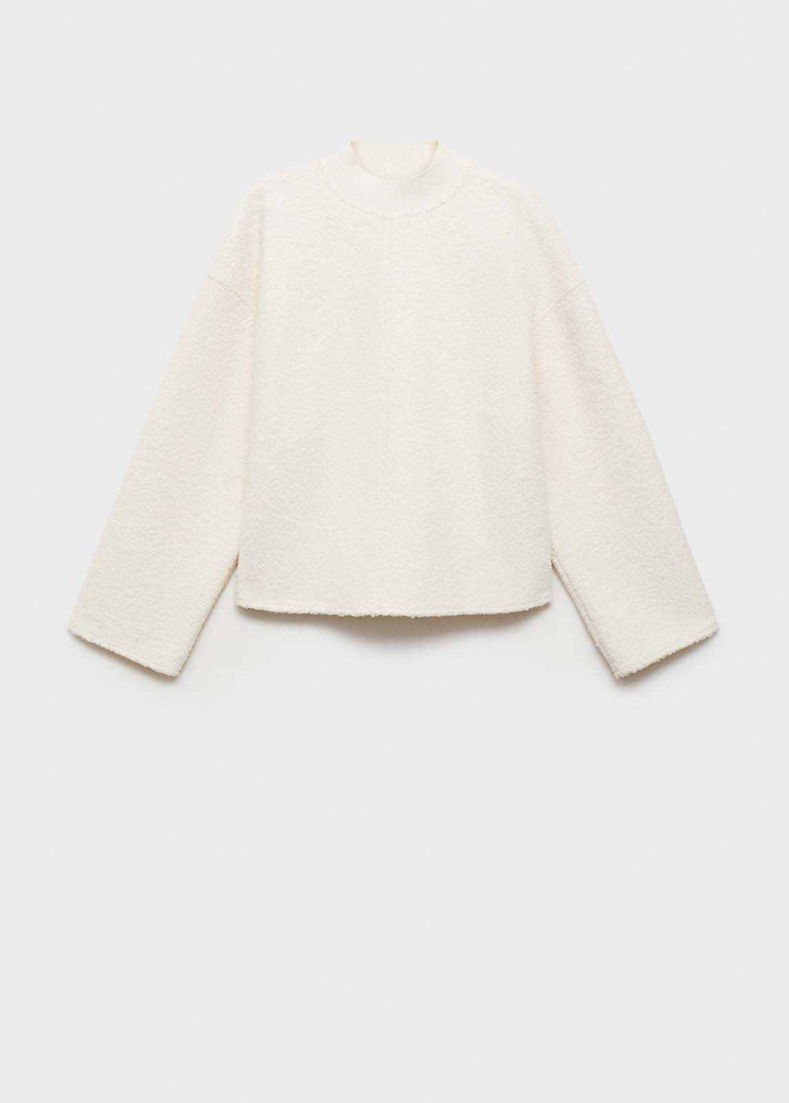 Sin cierre,Terminaciones de canalé,Total look,Diseño recto,Tejido bouclé,Cuello perkins,Manga larga