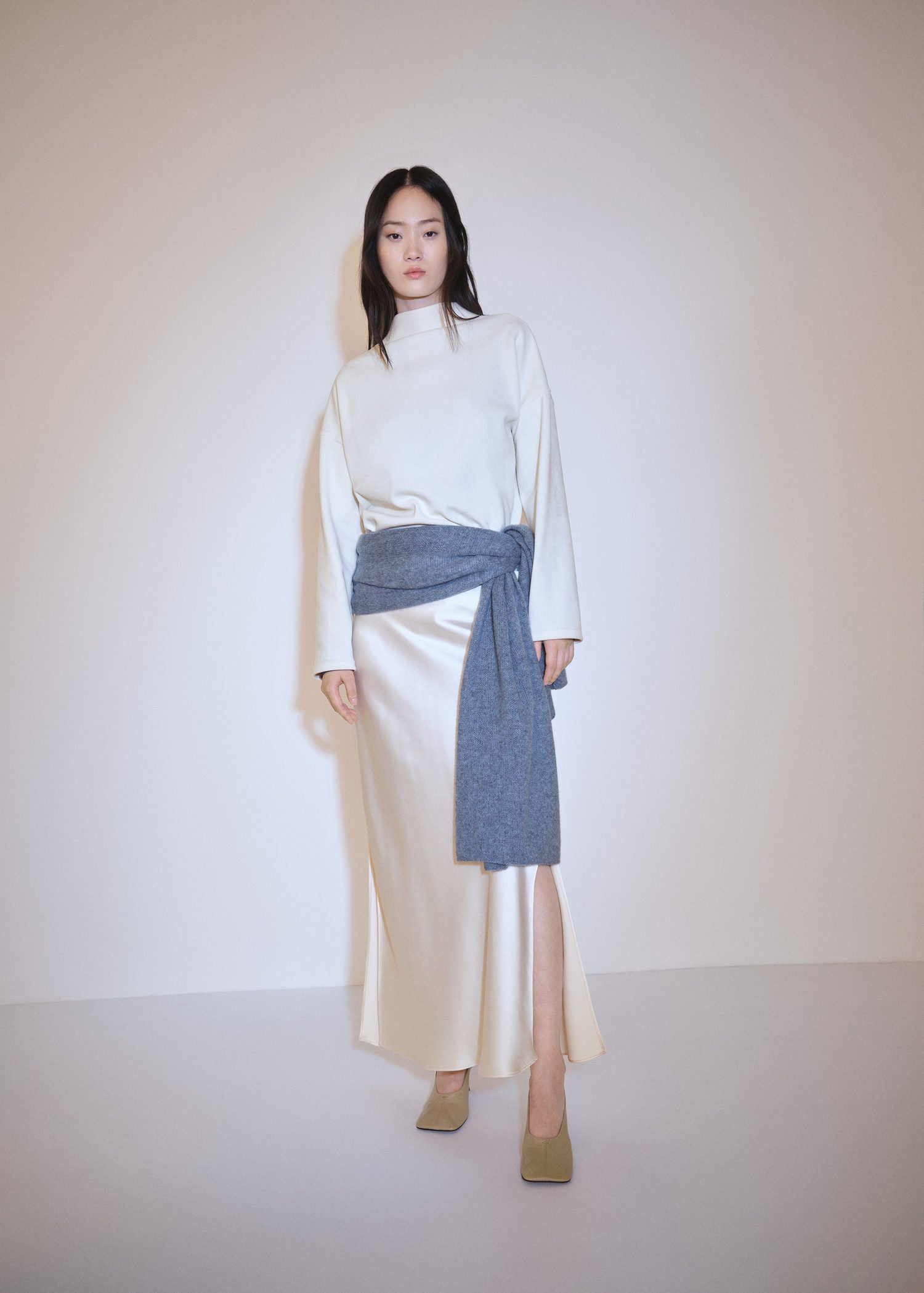 Diseño estándar,Sin cierre,Total look,Diseño recto,Tejido de pana,Cuello perkins,La modelo mide 1,75 y lleva una talla S/36,Manga larga