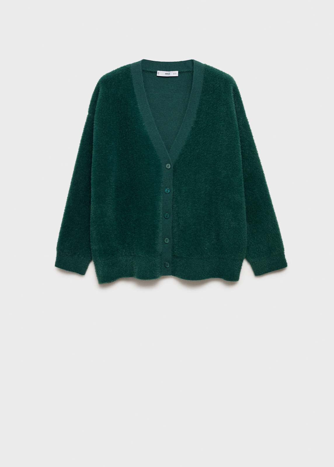 Efecto pelo,Cierre de botones en la parte delantera,Acabado suave,Escote de pico,Diseño recto,Tejido de punto,Manga larga