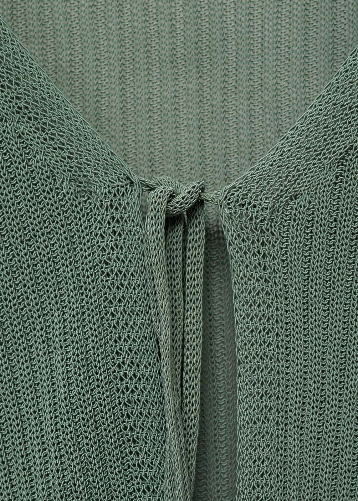 Tejido de punto de canalé,Total look,Cuello de pico,Cierre de lazos en la parte delantera,Diseño entallado,Manga larga