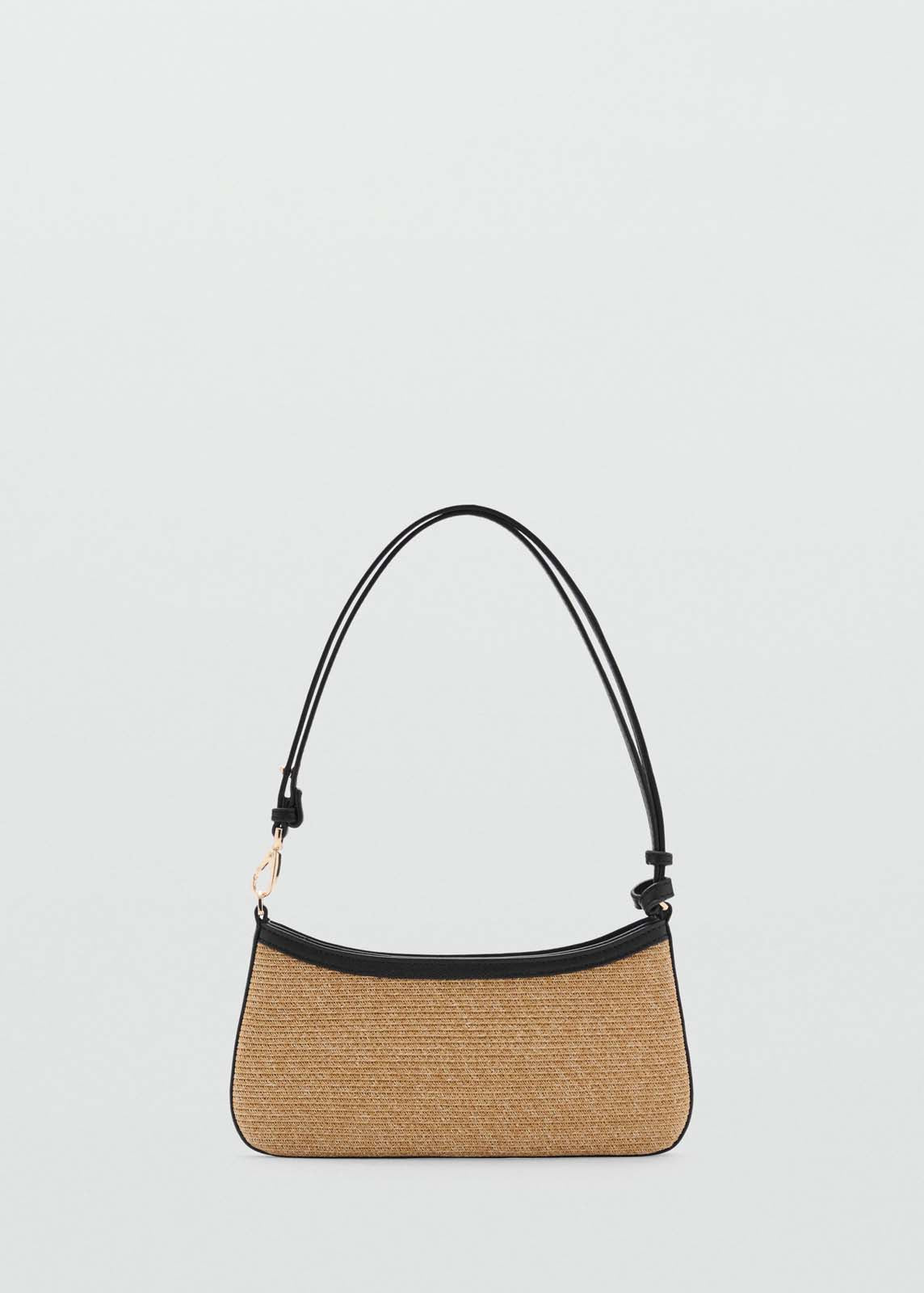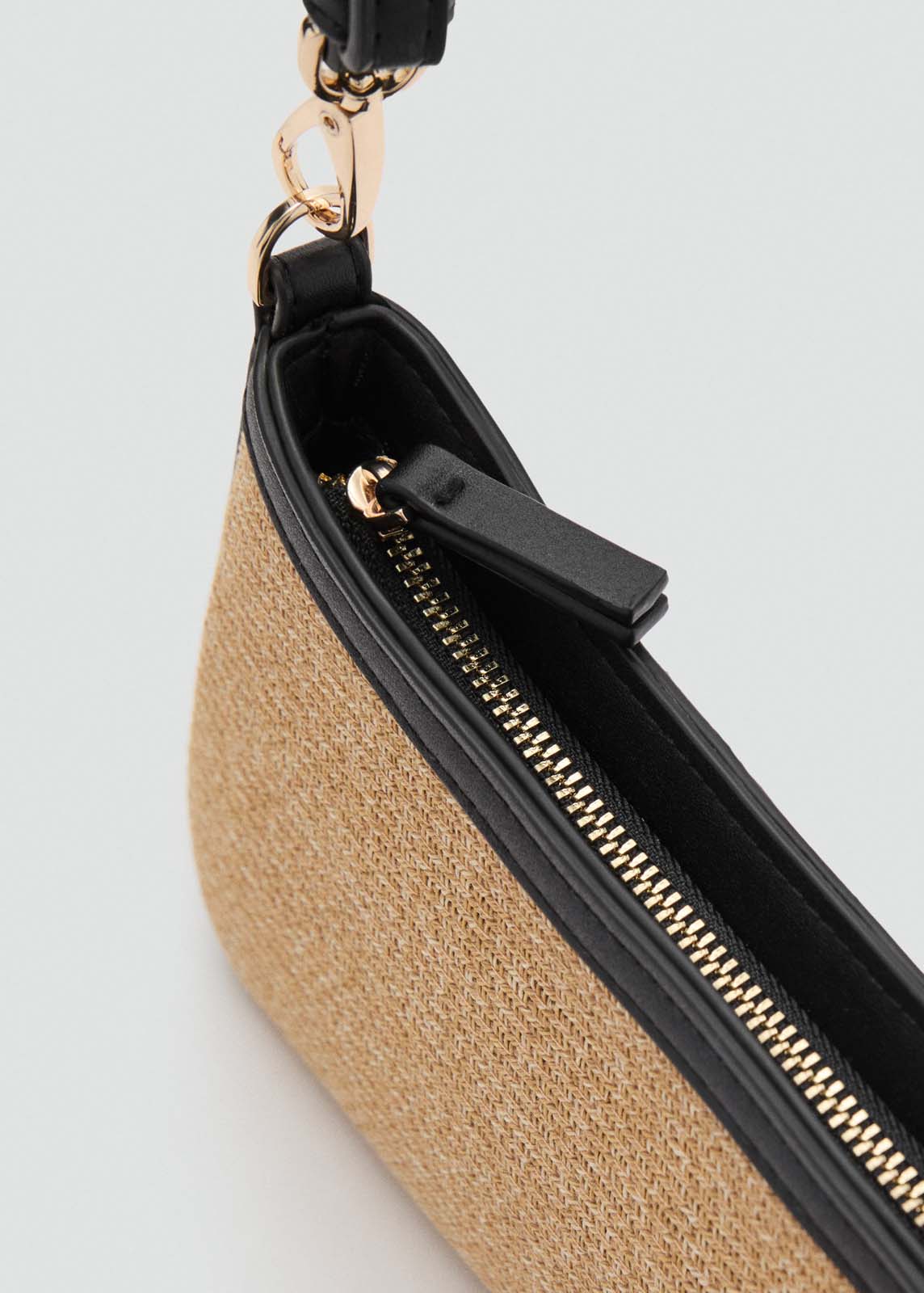 Tejido de fibra natural,Asa corta,Tamaño pequeño,Asa en contraste,Asa de hombro extraíble y regulable,Cierre de cremallera