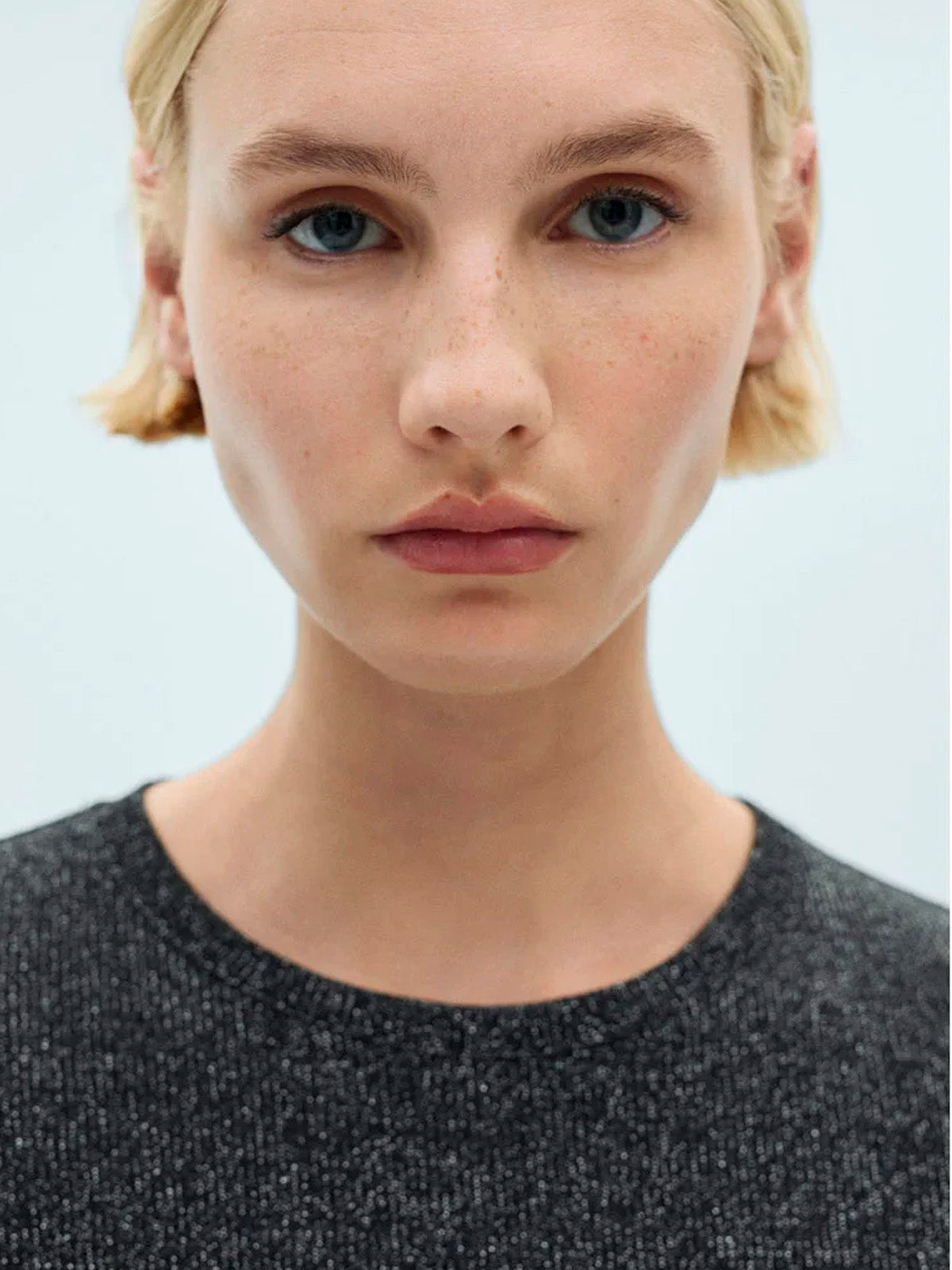 Diseño estándar,Tejido de punto fino,Sin cierre,Tejido de lúrex,Cuello redondo,Tejido ligero,Slim fit,Diseño recto,Manga larga