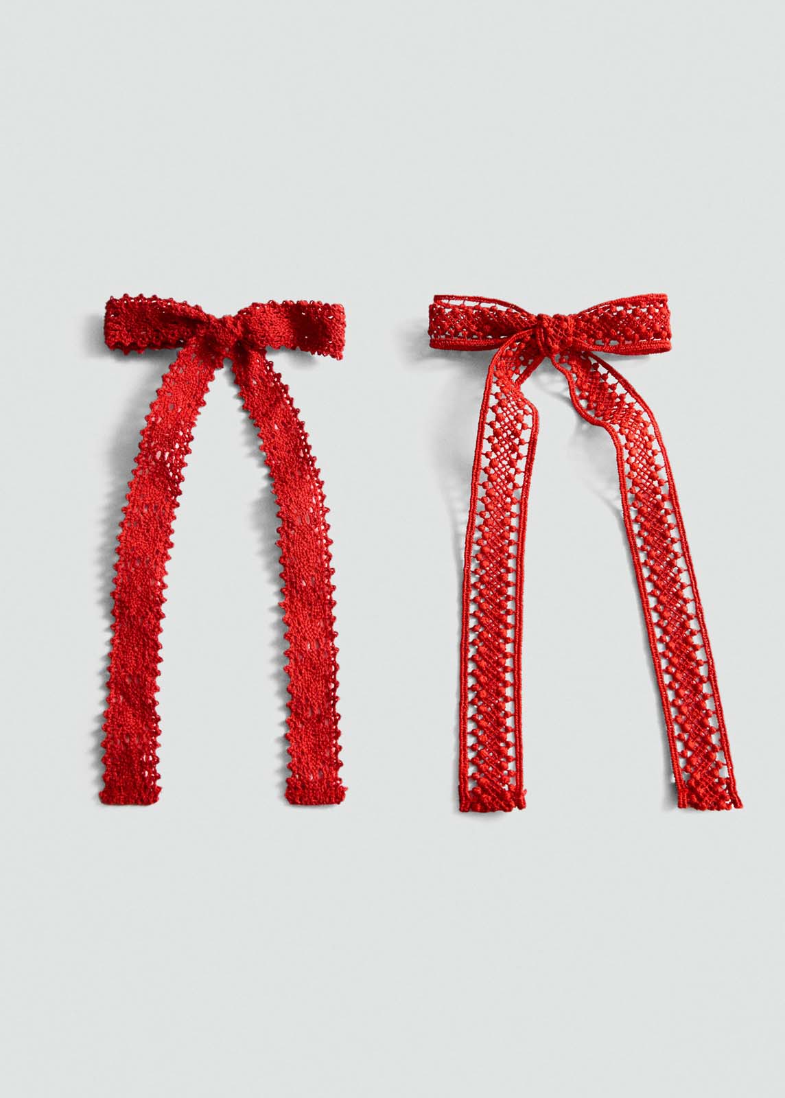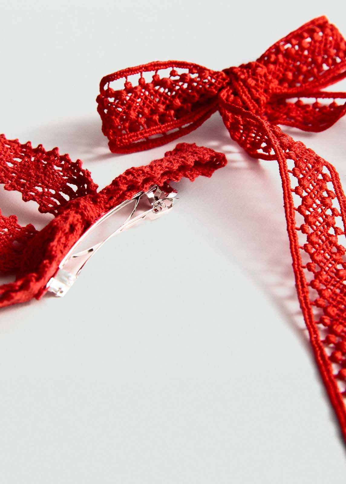 Tejido mezcla de algodón. Diseño de lazo. Pasador de pelo. Pack de 2. Tejido de crochet.