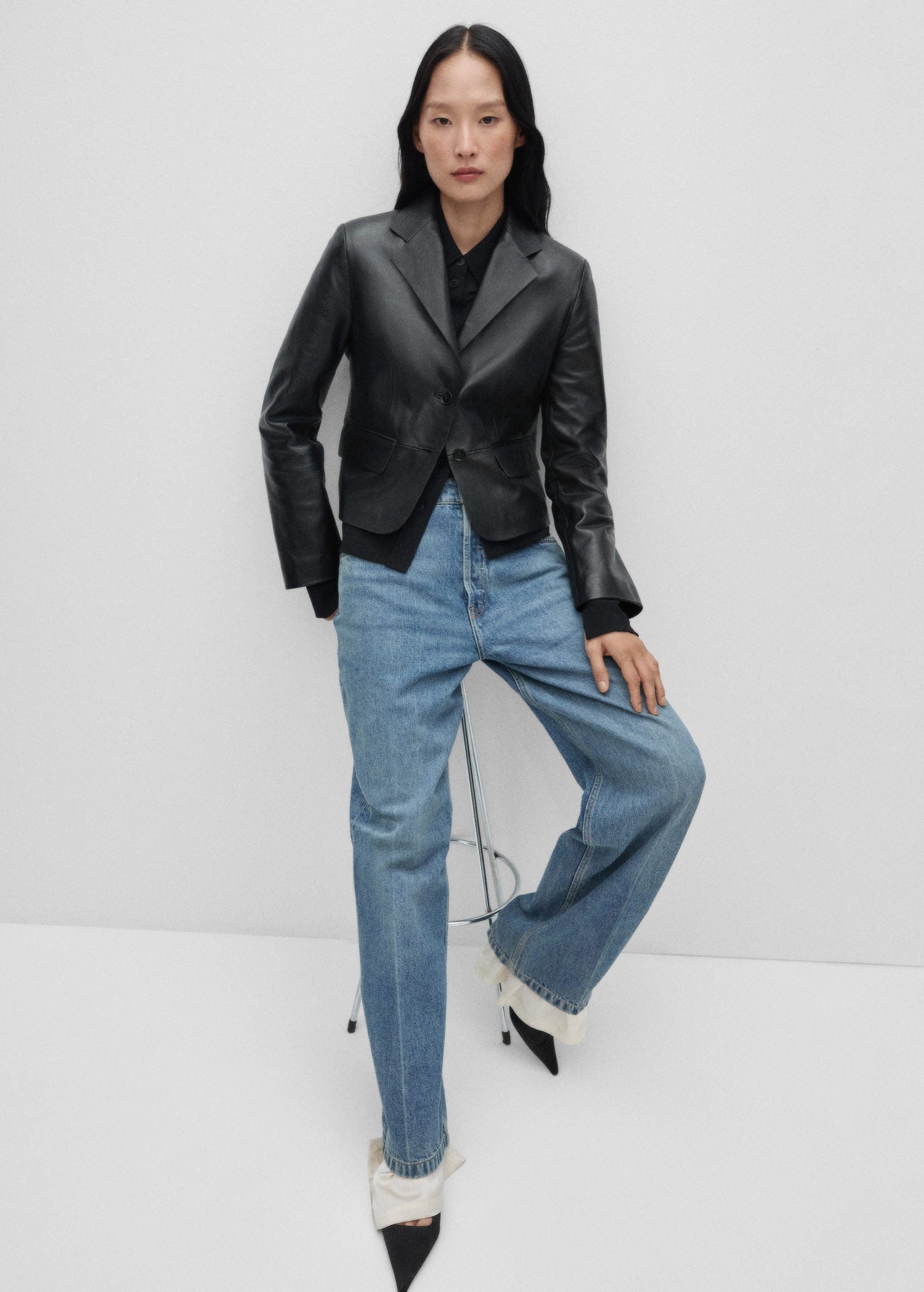 Forro interior,Cuello pico con solapa,Solapas con muesca,Diseño crop,Diseño recto,100% piel ovino,Dos bolsillos de solapa en la parte delantera,Cierre delantero con botones,Diseño entallado,Colección Selection,La modelo mide 1,81 y lleva una talla S/36,La modelo mide 1,75 y lleva una talla S/36,Manga larga