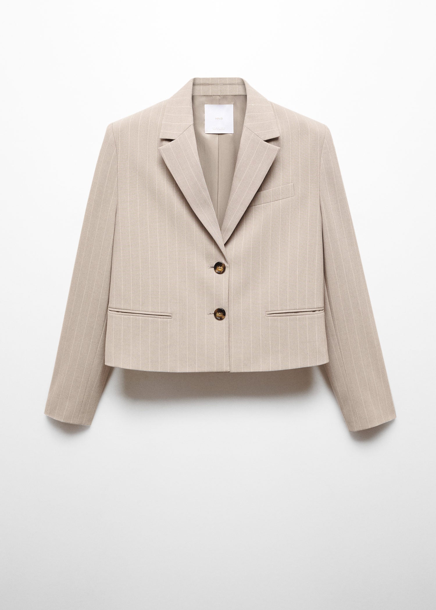 Manga larga,Diseño recto,Solapas con muesca,Forro interior,Estampado de raya diplomática,Bolsillo de ribete en el pecho,Dos bolsillos de ribete en la parte delantera,Cierre de dos botones en la parte delantera,Diseño corto,Cuello pico con solapa,Total look,Looks de oficina