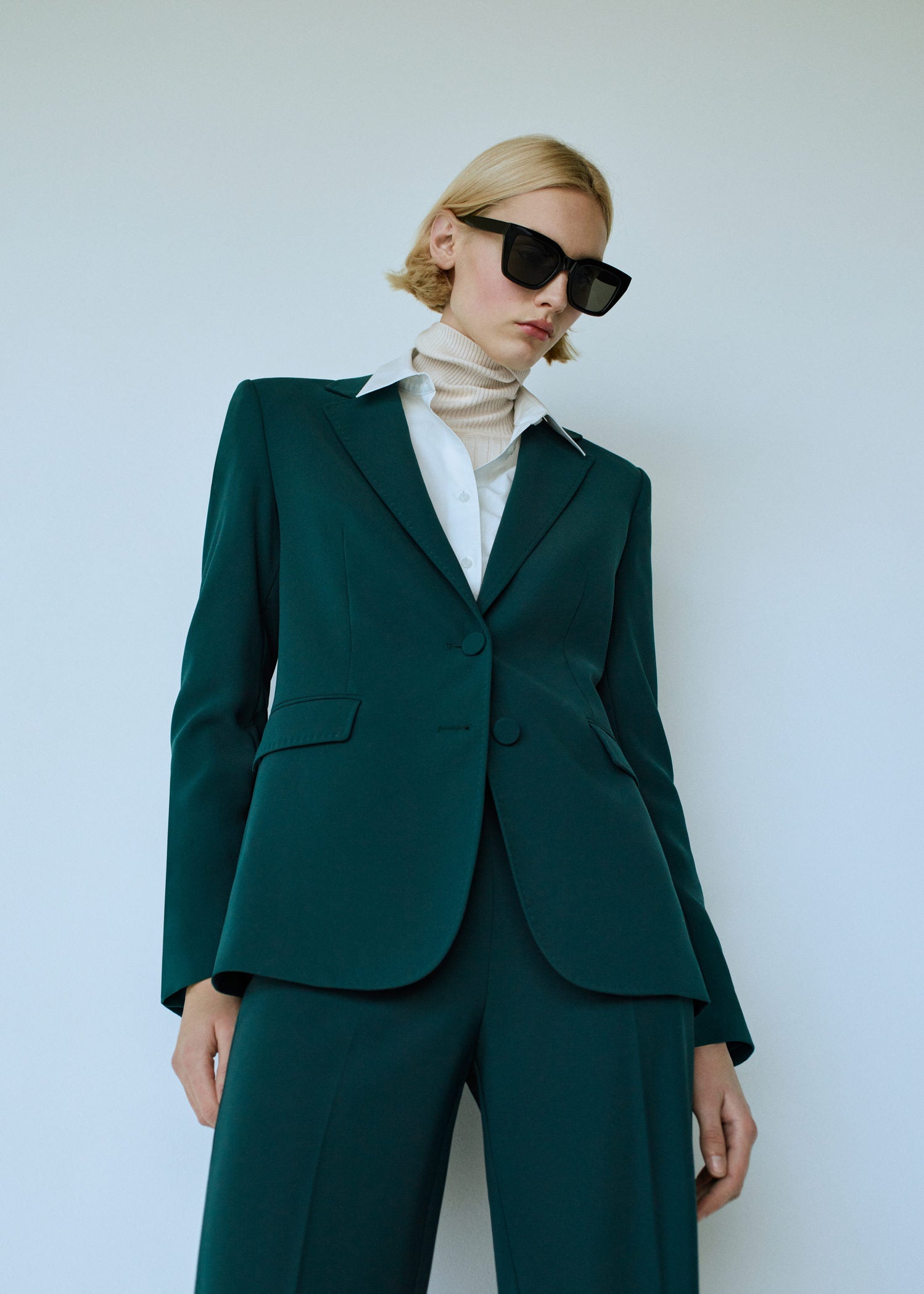Diseño recto,Manga larga con puños abotonados,Solapas con muesca,Forro interior,Cierre de dos botones en la parte delantera,Cuello pico con solapa,Total look,Disponible Plus,Dos bolsillos delantero de ribete y solapa,Looks de oficina