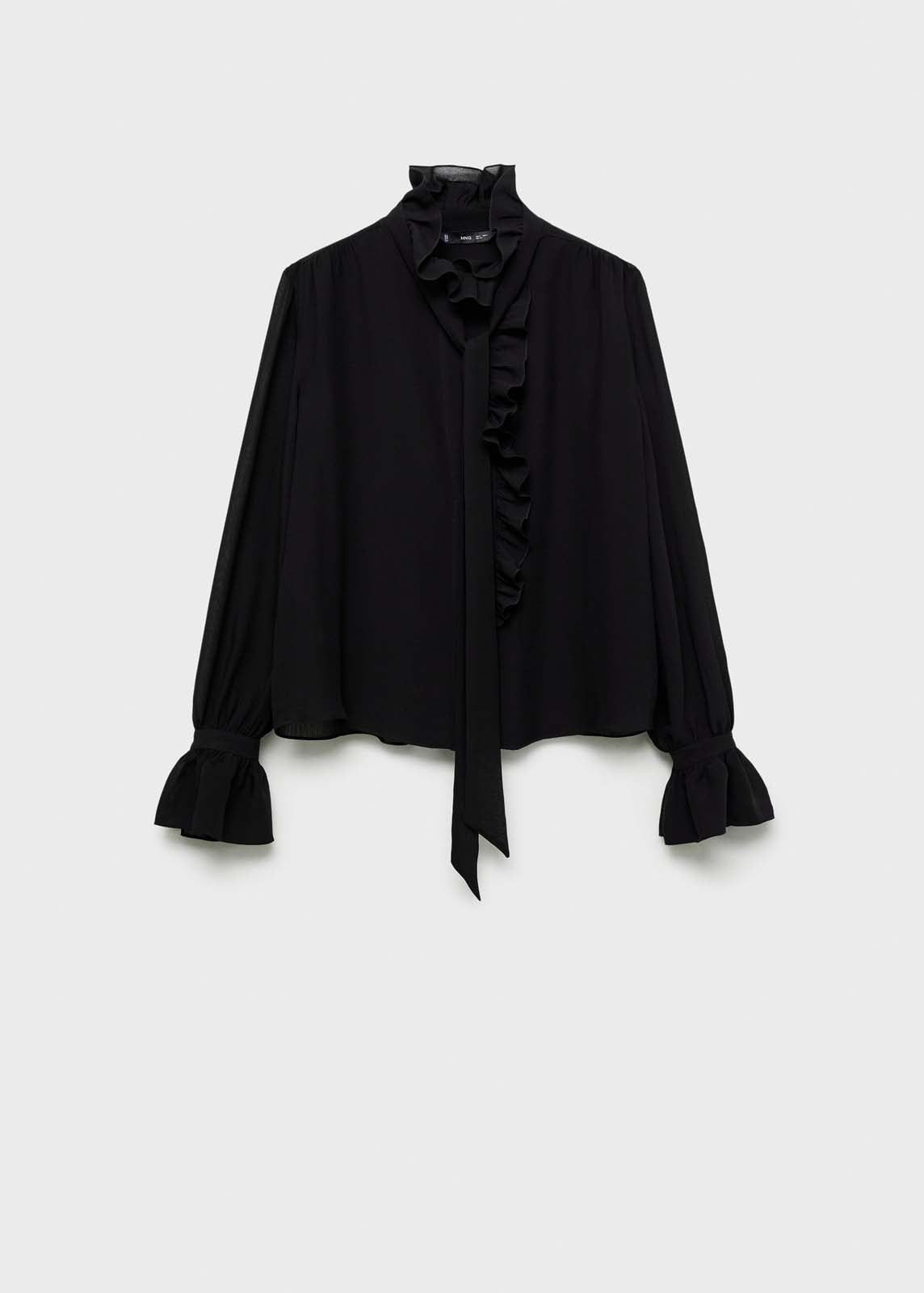 Colección fiesta y ceremonia,Cierre de botones oculto en la parte delantera,Tejido fluido,Manga larga con puños elásticos,Diseño volantes,Diseño recto,Cuello alto,La modelo mide 1,79 y lleva una talla S/36