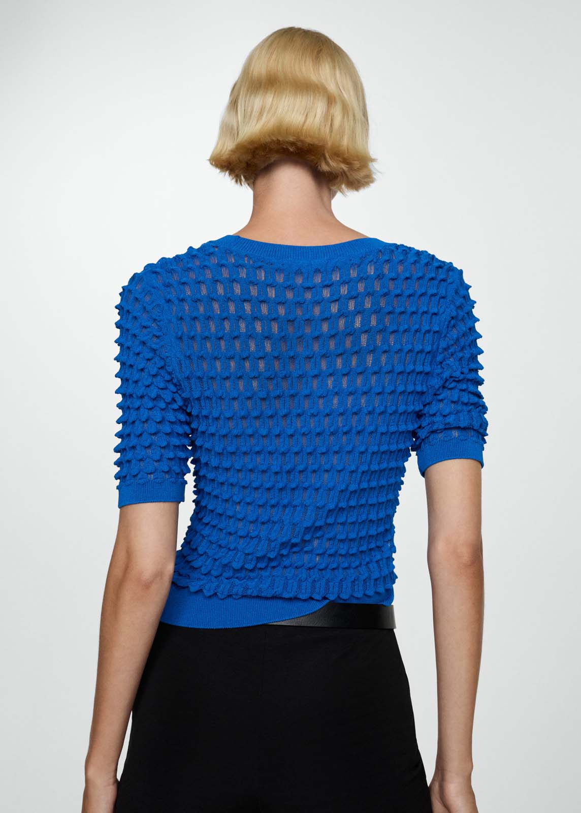 Manga corta,Tejido de punto fino,Cuello redondo,Tejido con textura,Diseño entallado