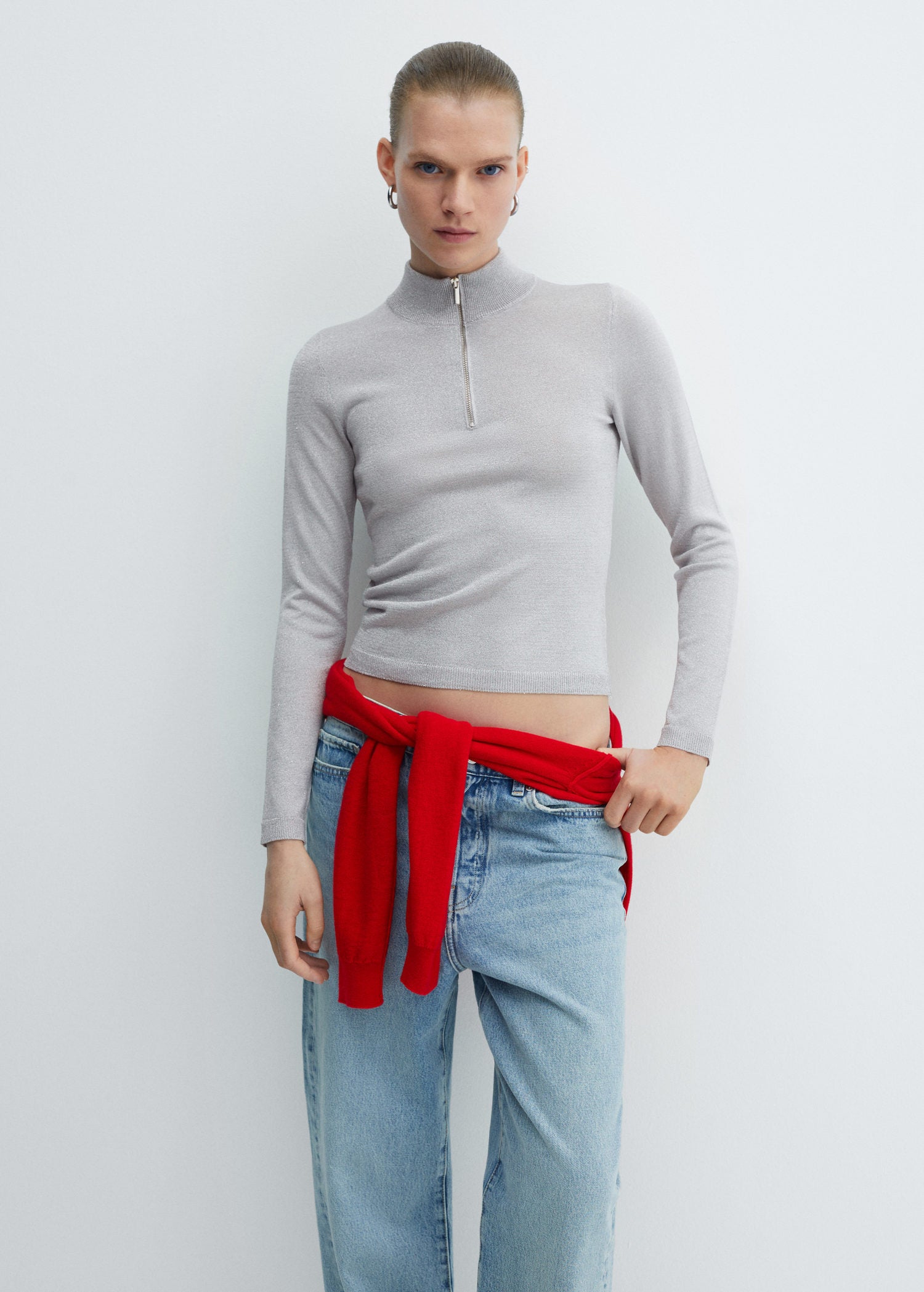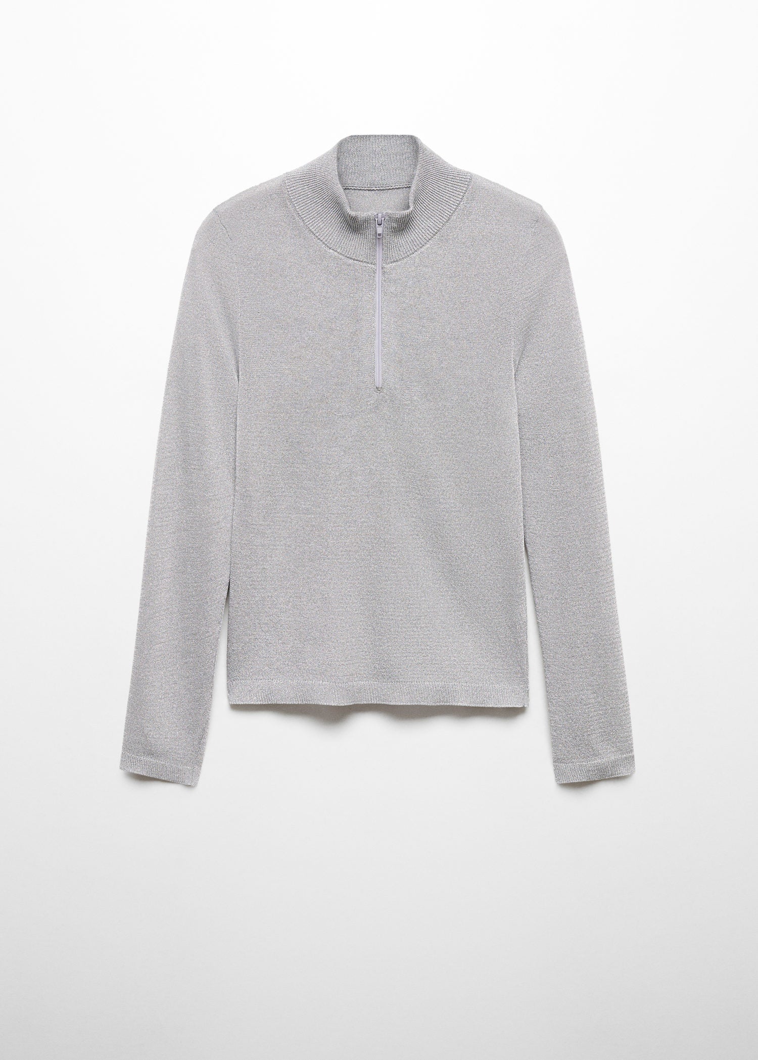 Tejido de punto fino,Manga larga,Terminaciones en canalé,Tejido de lúrex,Diseño recto,Cuello perkins con cierre de cremallera,Looks de oficina