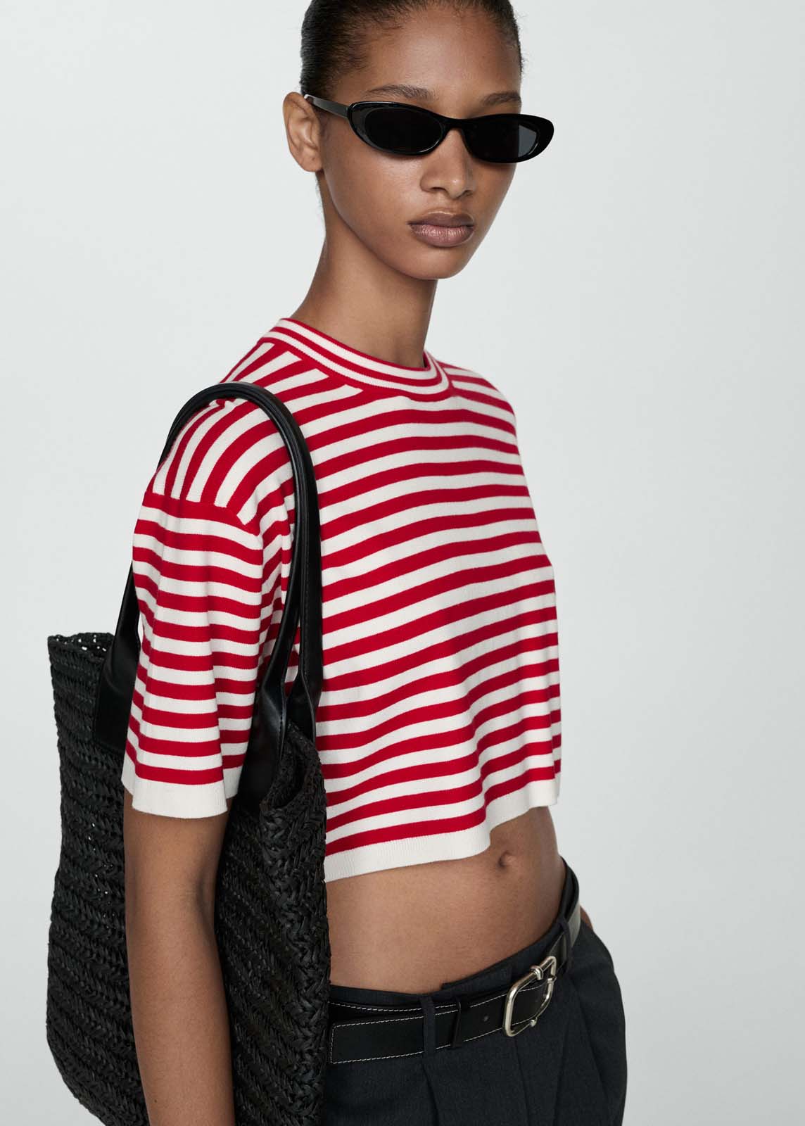 Manga corta,Tejido de punto fino,Sin cierre,Diseño crop,Cuello redondo,Diseño recto,Diseño de rayas