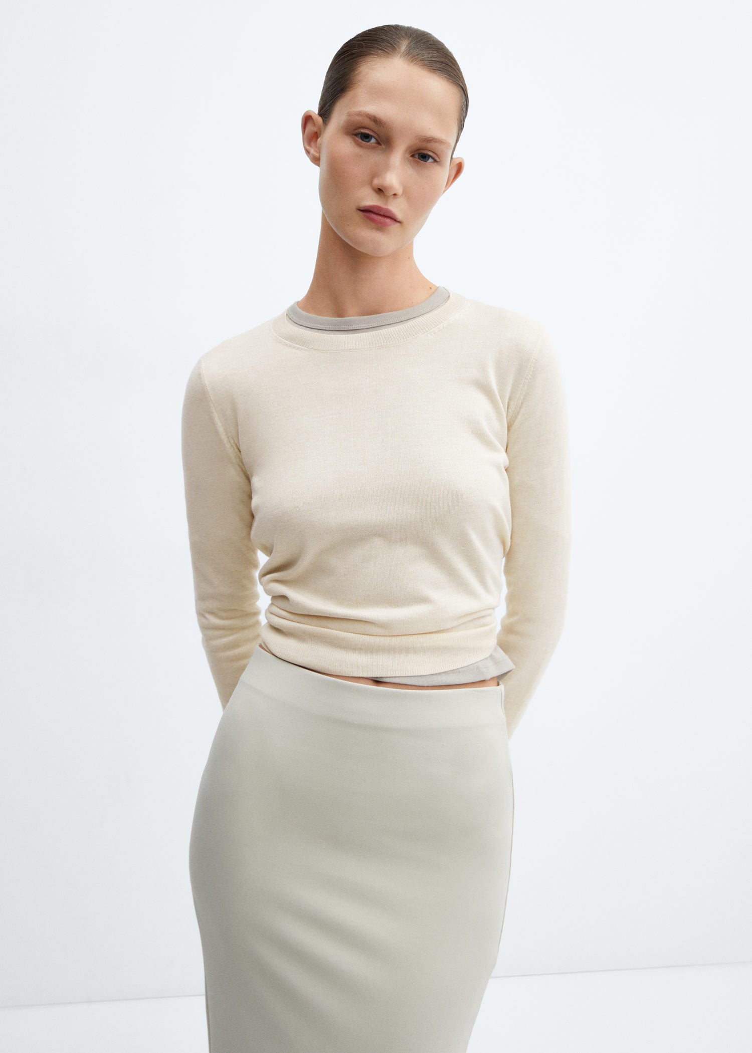 Tejido de punto fino,Cuello redondo,Manga larga,Diseño recto,Sin cierre,Disponible Plus,Colección Básicos
