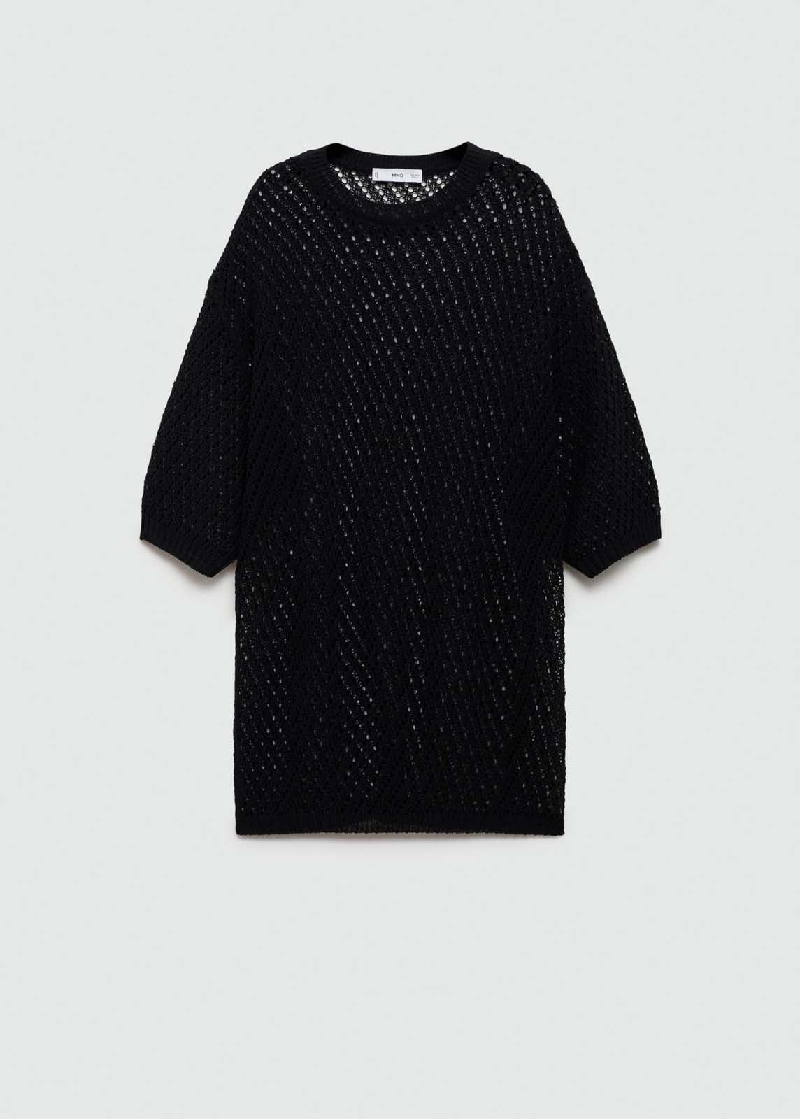 Manga corta,Tejido de punto grueso,Sin cierre,Cuello redondo,Diseño recto,Diseño largo,Tejido mezcla de algodón,Tejido de crochet