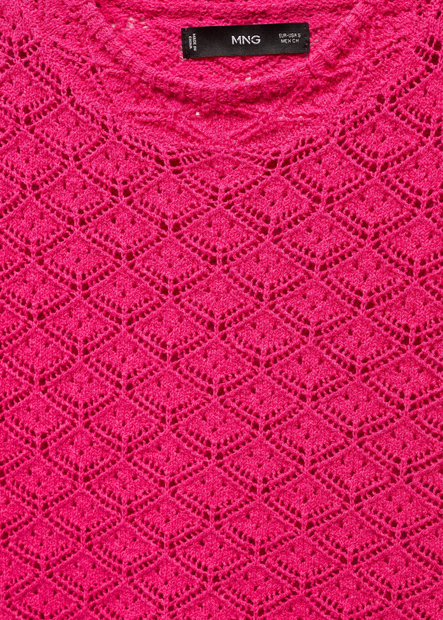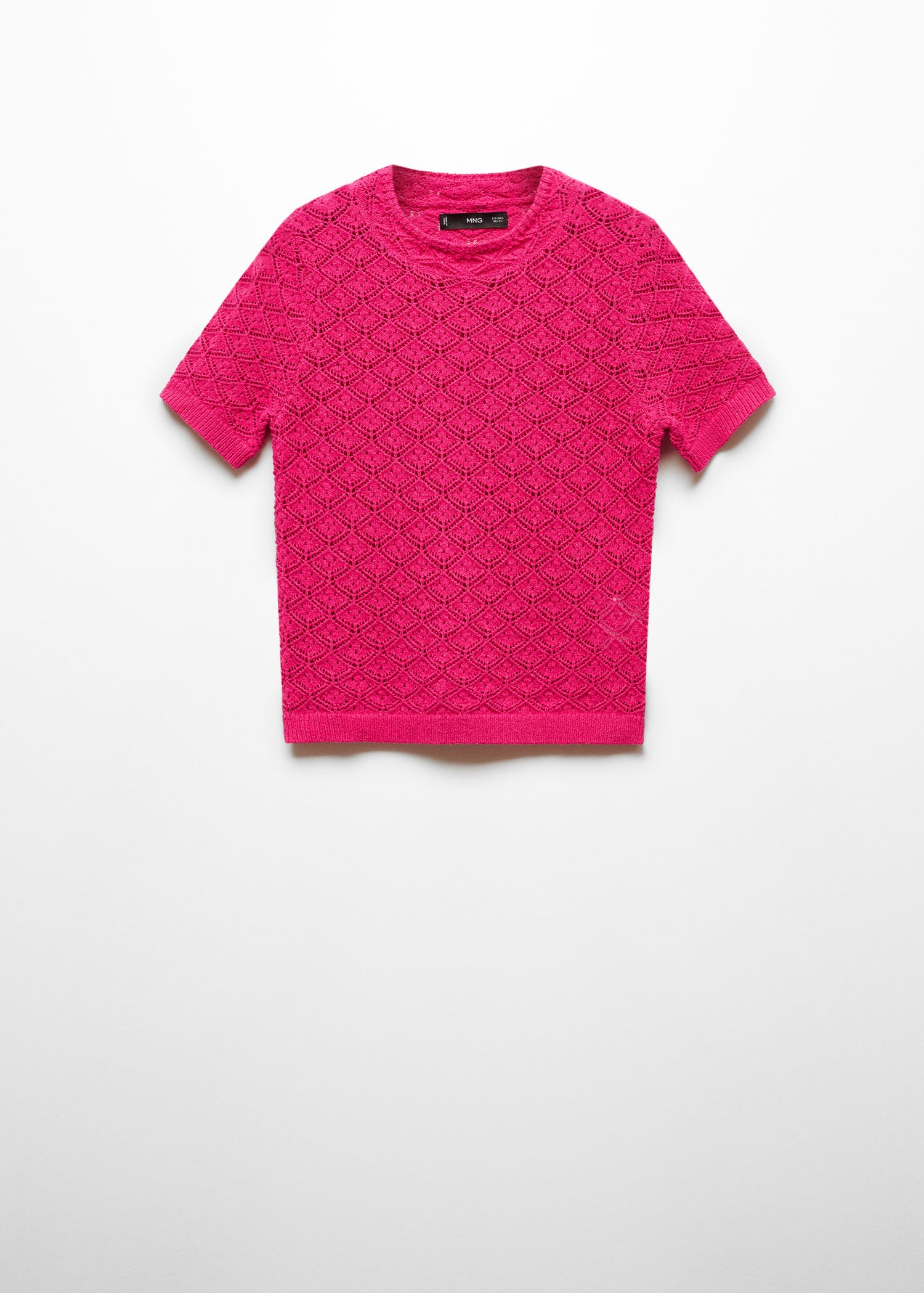 Tejido mezcla de algodón,Cuello redondo,Manga corta,Diseño calado,Terminación en contraste,Diseño recto