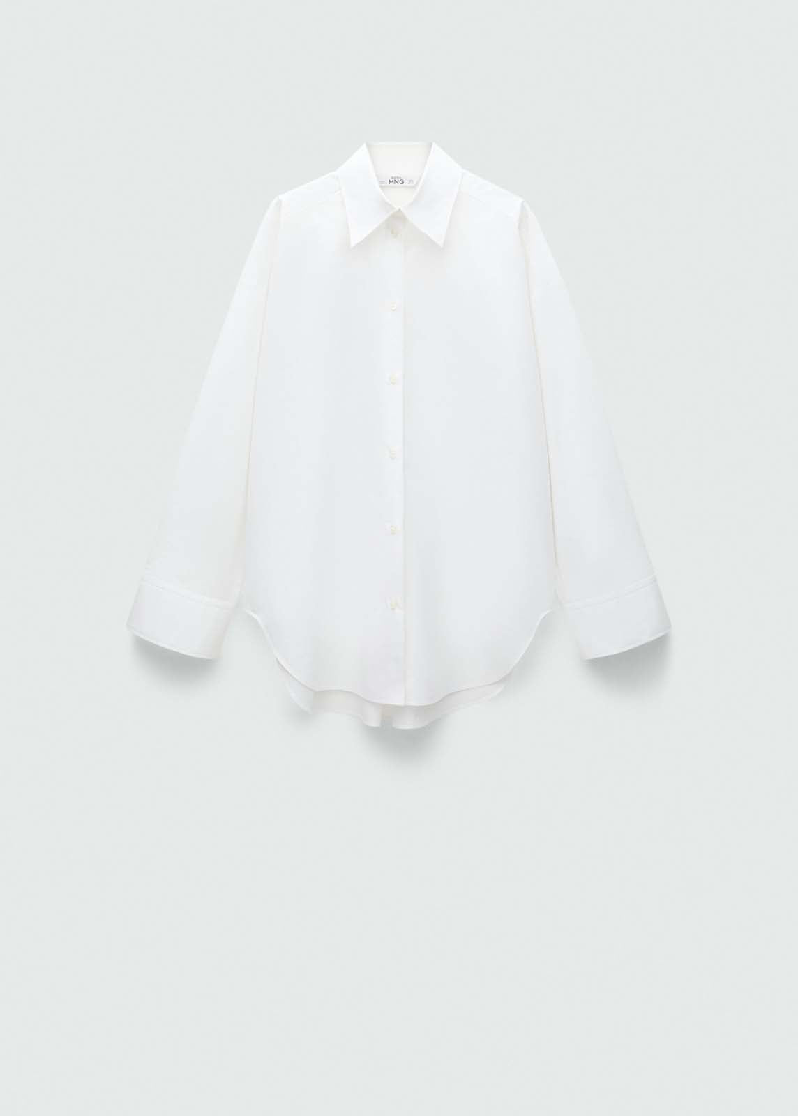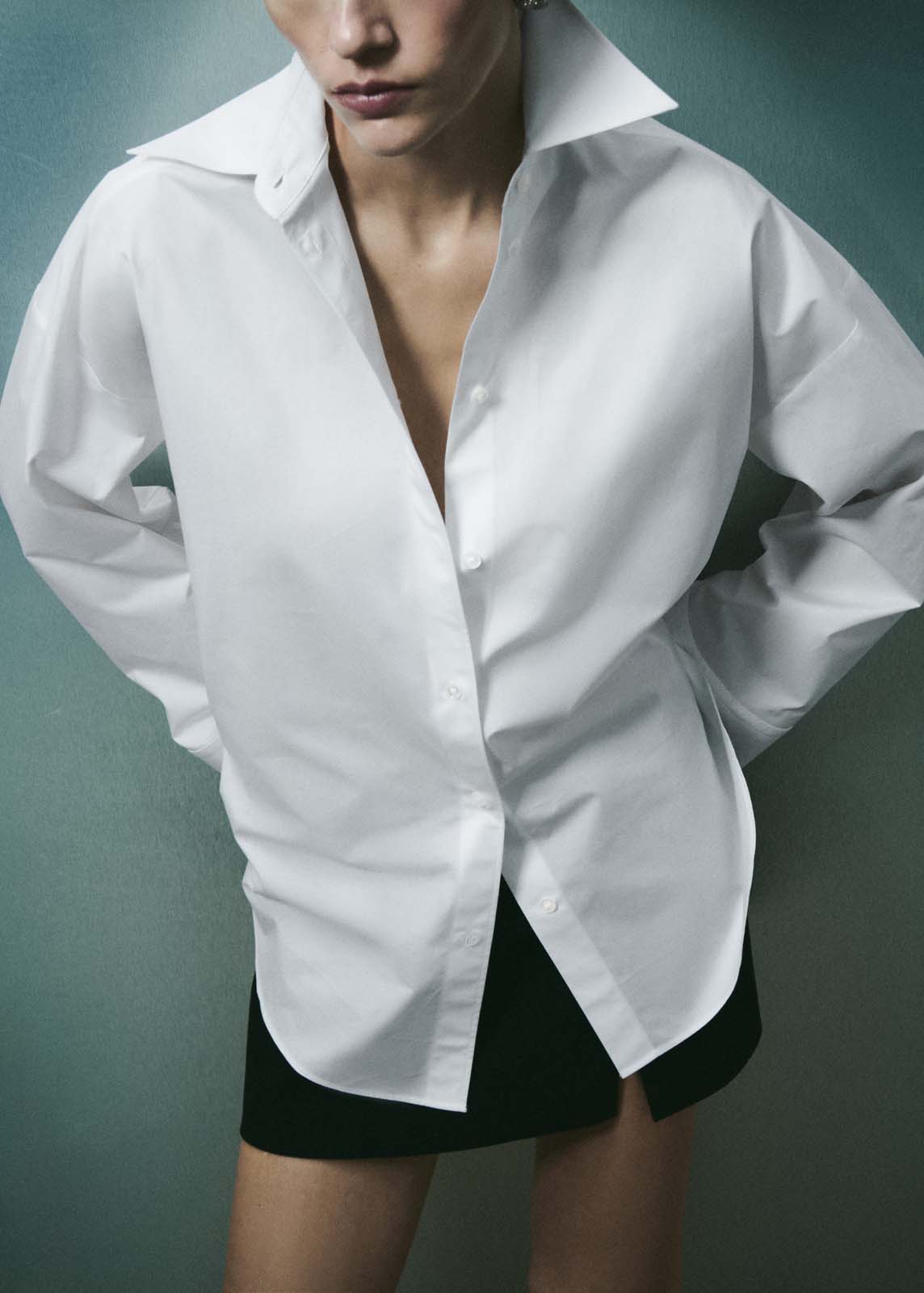 Colección fiesta y ceremonia,Tejido popelín de algodón,Manga larga con puños abotonados,Diseño recto,Cuello camisero,Diseño oversize,Diseño largo,Tejido 100% algodón,Cierre delantero con botones,La modelo mide 1,77 y lleva una talla S/36,Colección Selection