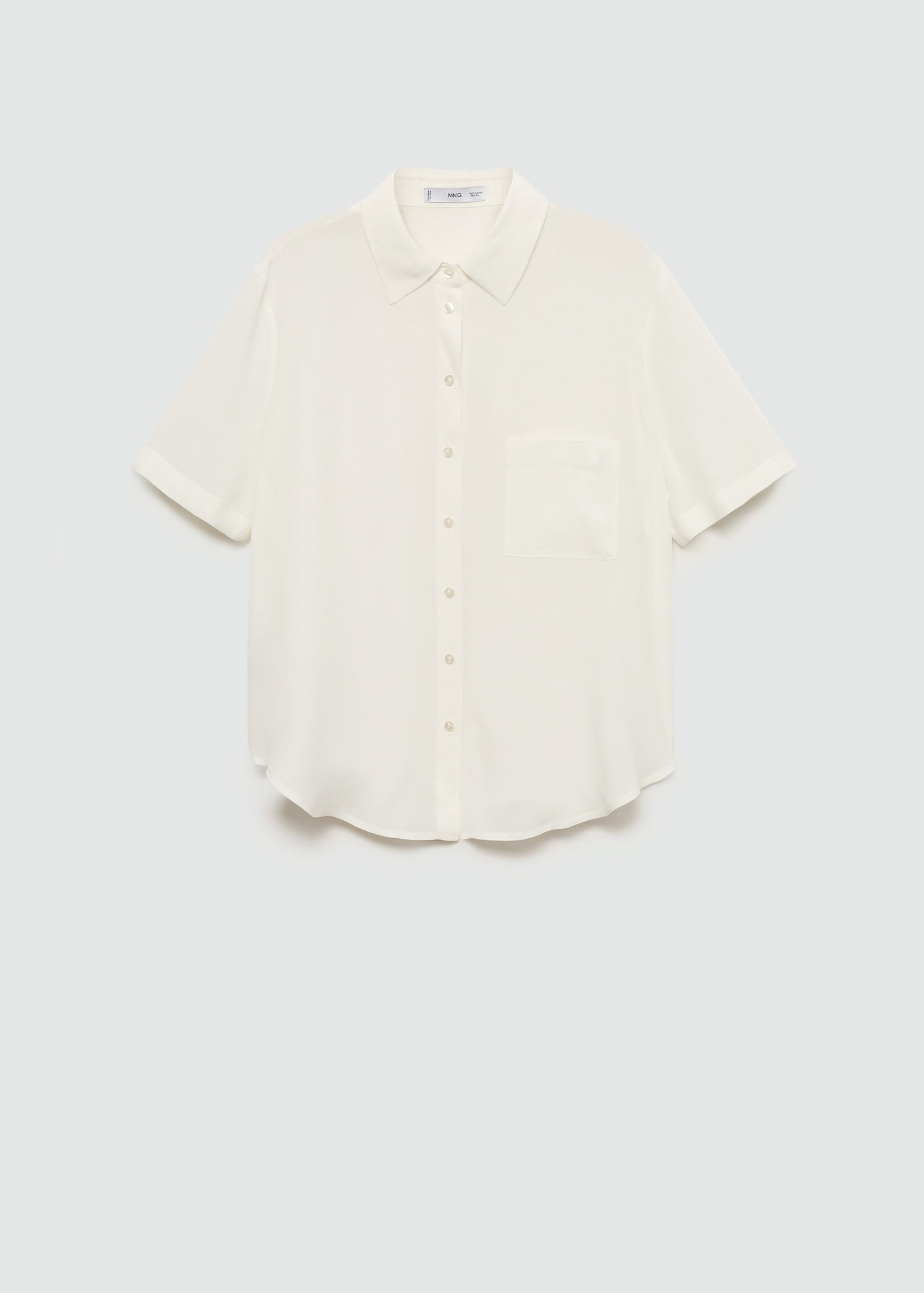 Manga corta,Tejido fluido,Disponible Plus,Bolsillo de parche en la parte delantera,Diseño recto,Cuello camisero,Cierre delantero con botones