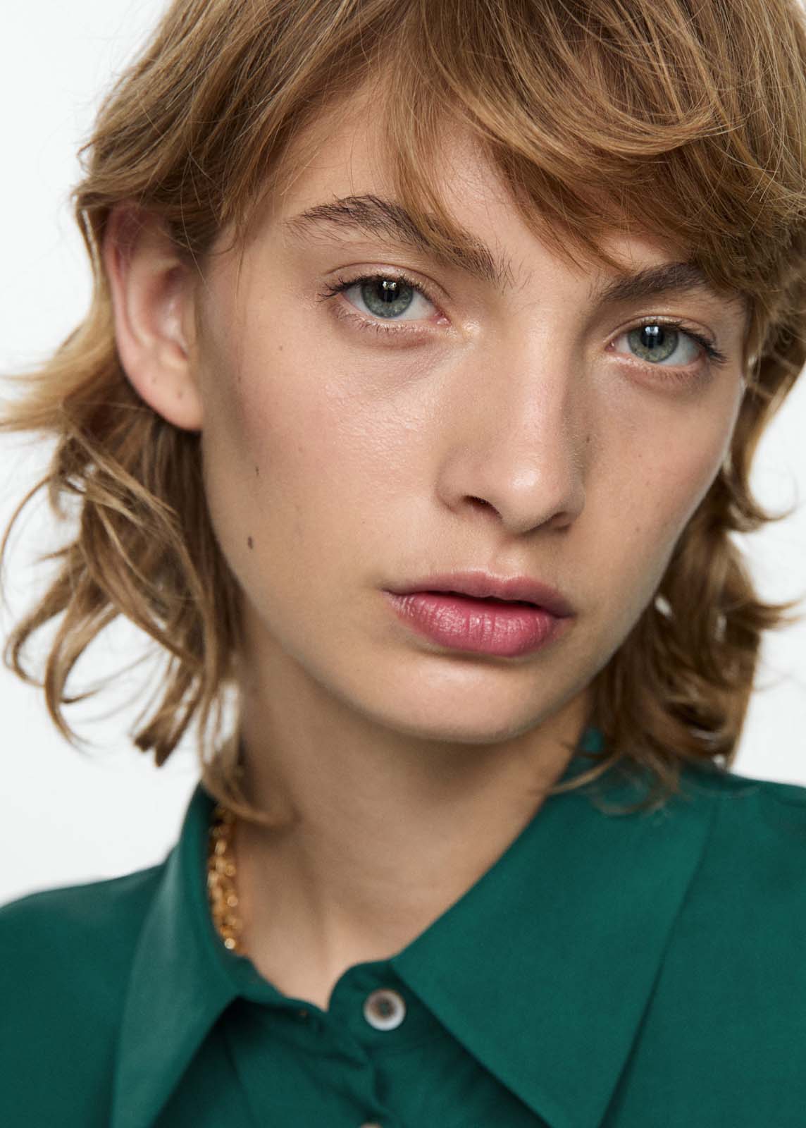 Manga corta,Cierre de botones en la parte delantera,Tejido mezcla de lino y lyocell,Disponible Plus,Diseño recto,Cuello camisero