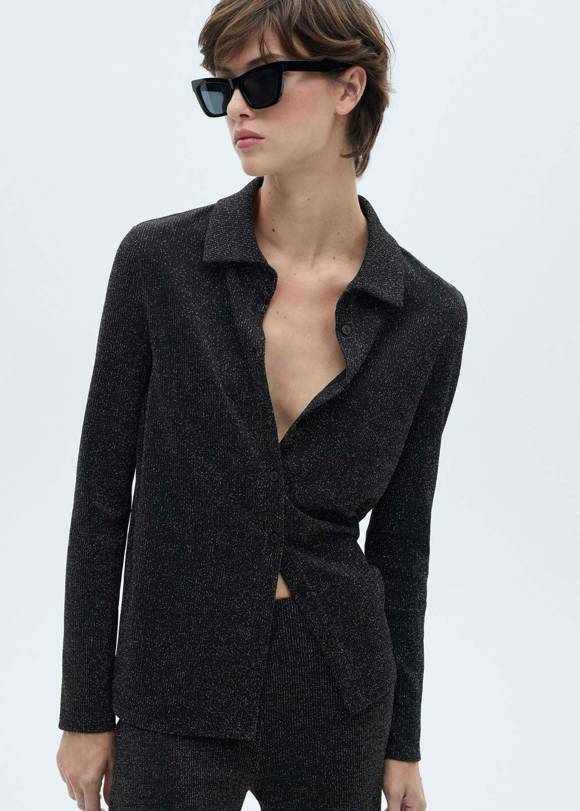 Colección fiesta y ceremonia,Cierre de botones en la parte delantera,Tejido de lúrex,Total look,Diseño recto,Cuello camisero,La modelo mide 1,78 y lleva una talla S/36,Manga larga