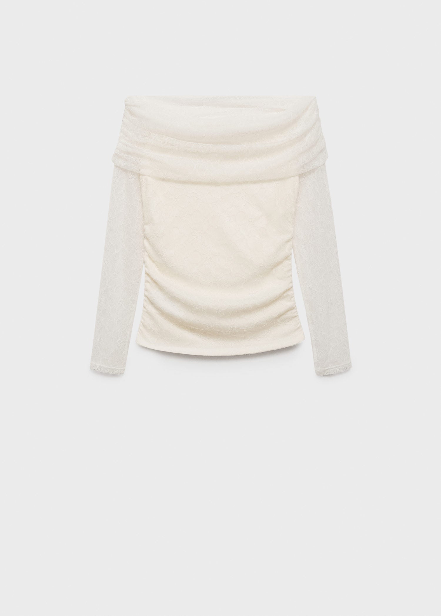Forro interior,Cuello barco,Tejido de encaje,Hombros descubiertos,Diseño off-shoulder,Detalles fruncidos,Diseño entallado,Manga larga