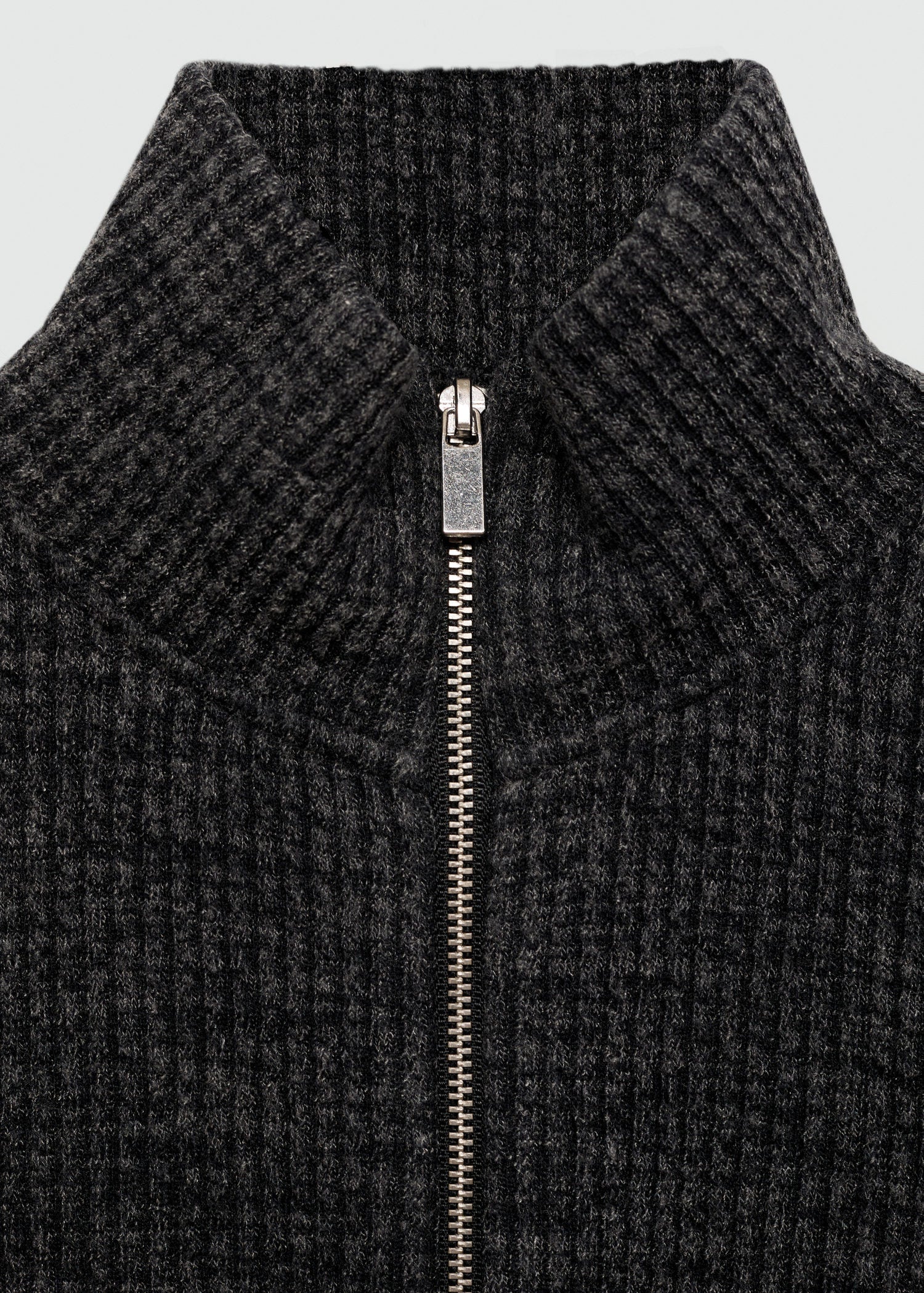 Cierre delantero con cremallera,Total look,Diseño recto,Cuello perkins,Tejido punto circular,Diseño entallado,La modelo mide 1,75 y lleva una talla S/36,Manga larga