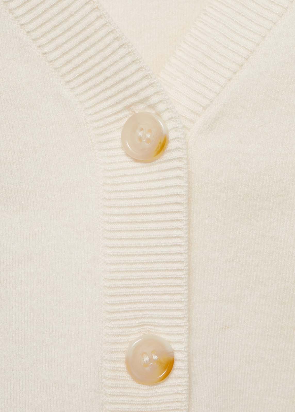 Tejido de punto fino,Cuello pico,Cierre de botones en la parte delantera,Diseño recto,La modelo mide 1,79 y lleva una talla S/36,Manga larga,Terminaciones en canalé