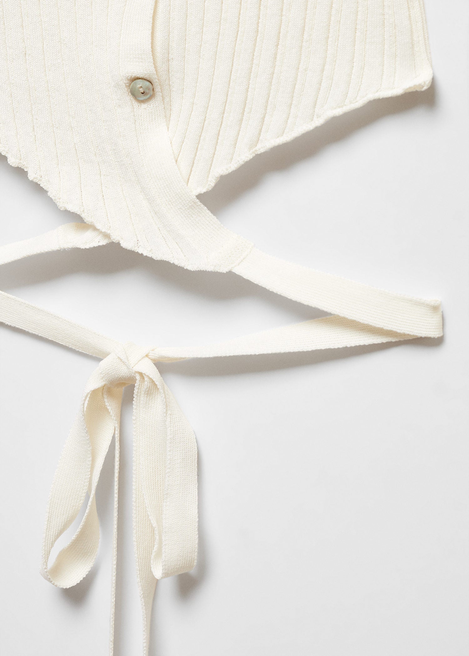 Punto medio. Punto de canalé. Diseño corto. Diseño entallado. Cuello redondo. Manga larga. Cierre delantero con botones. Cinta en la cintura con cierre de lazo.