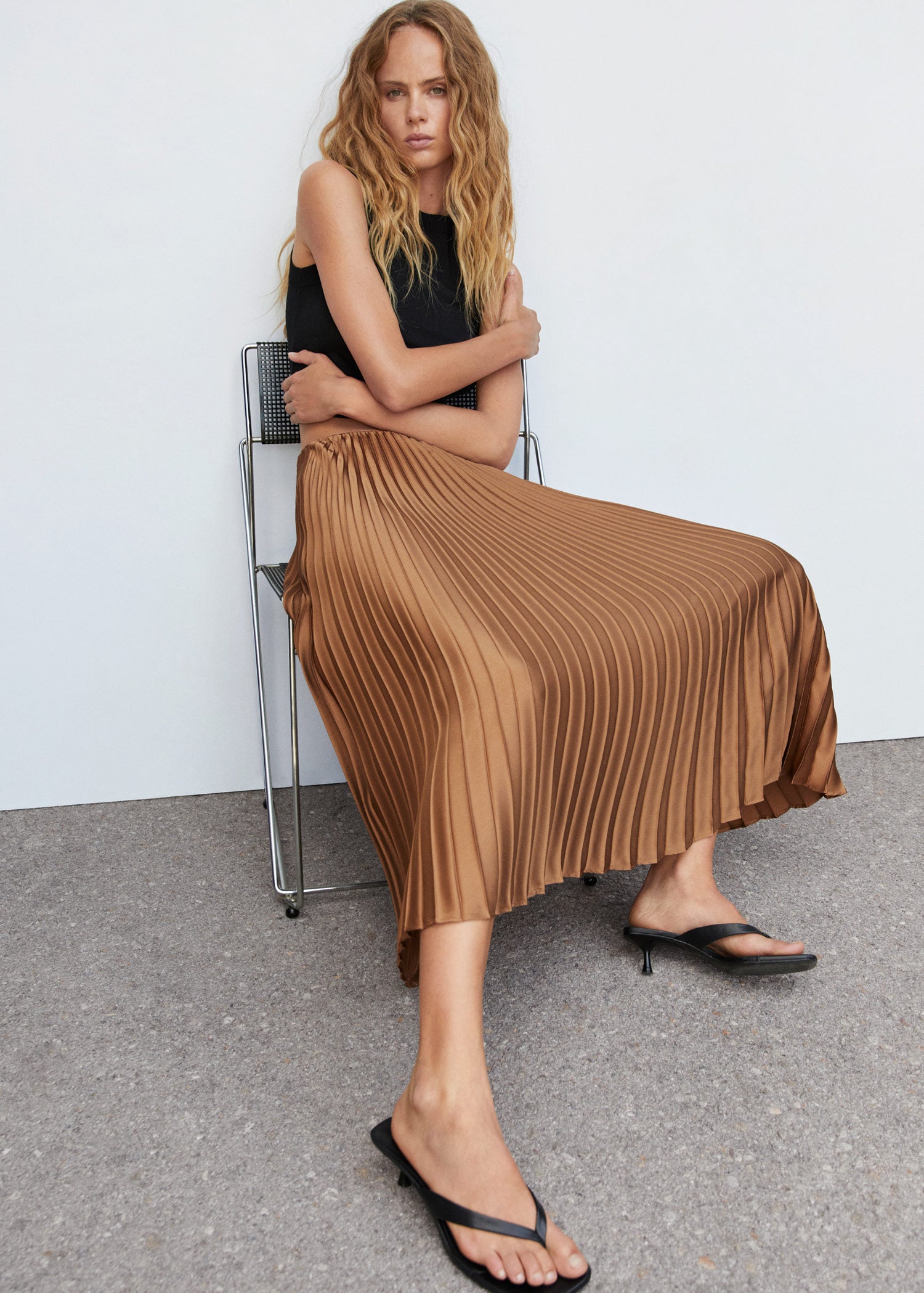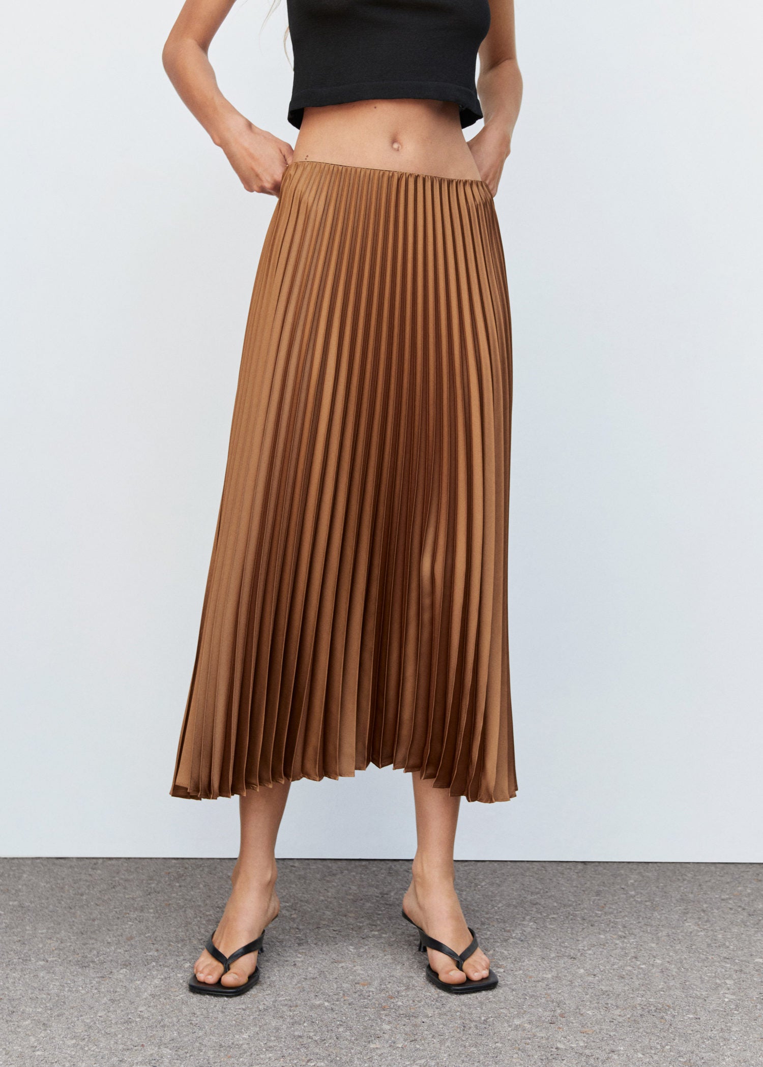 Falda midi plisada- Tejido satinado,Tejido fluido,Diseño plisado,Cintura elástica,Diseño midi,Looks de oficina- Lavar a maquina max 30°c, No usar lejia, Plancha max 110°c, No limpiar en seco, No se puede usar secadora- COMPOSICIÓN: 100% POLIÉSTER - 840mm x 860mm-