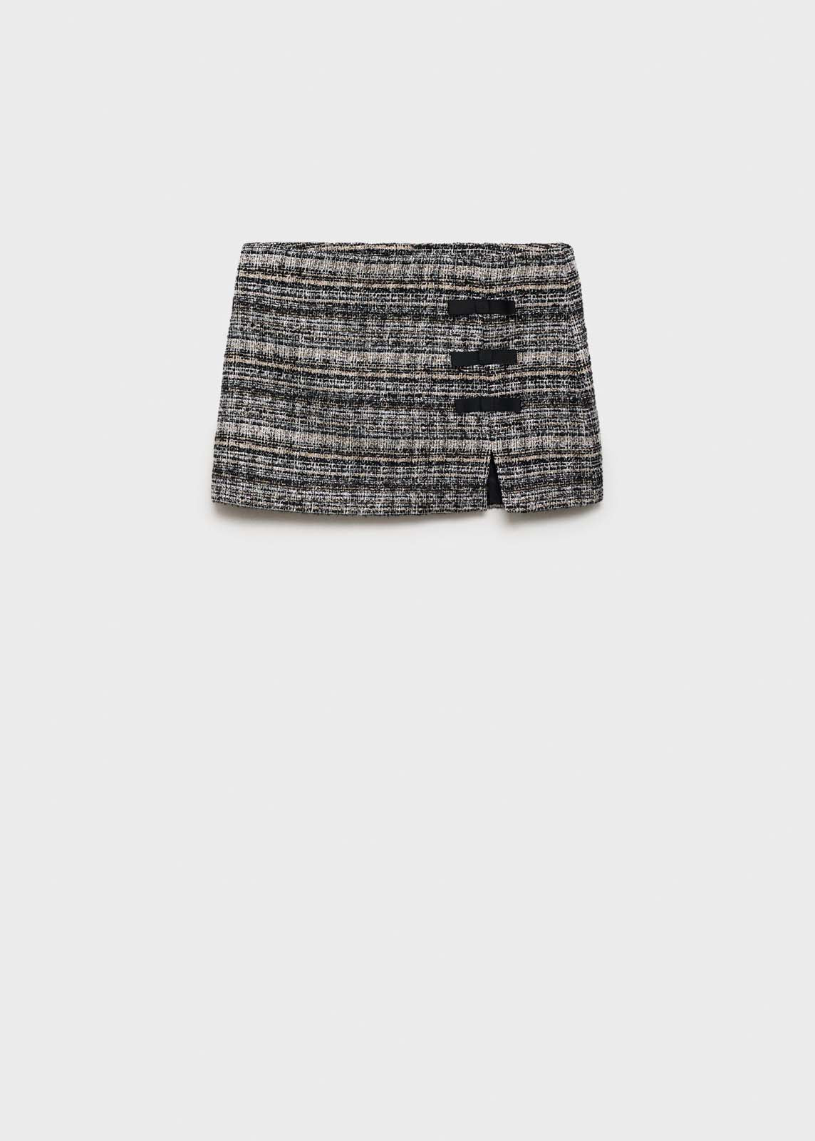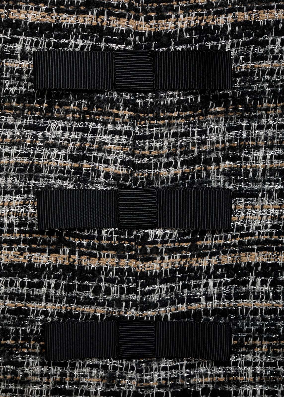 Abertura en el bajo parte delantera,Diseño corto,Tejido tweed,Total look,Diseño recto,Cierre de cremallera en la parte posterior,Lazos decorativos,La modelo mide 1,79 y lleva una talla S/36