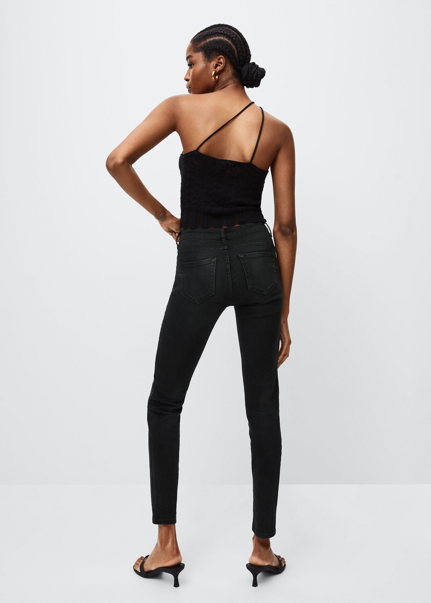 Tejido mezcla de algodón. Tejido de algodón estilo tejano vaquero. Tejido elástico. Diseño largo. Corte skinny. Tiro bajo. Cinco bolsillos. Trabillas. Cierre de cremallera y botón. Disponible Plus. Largo interior 75 cm.