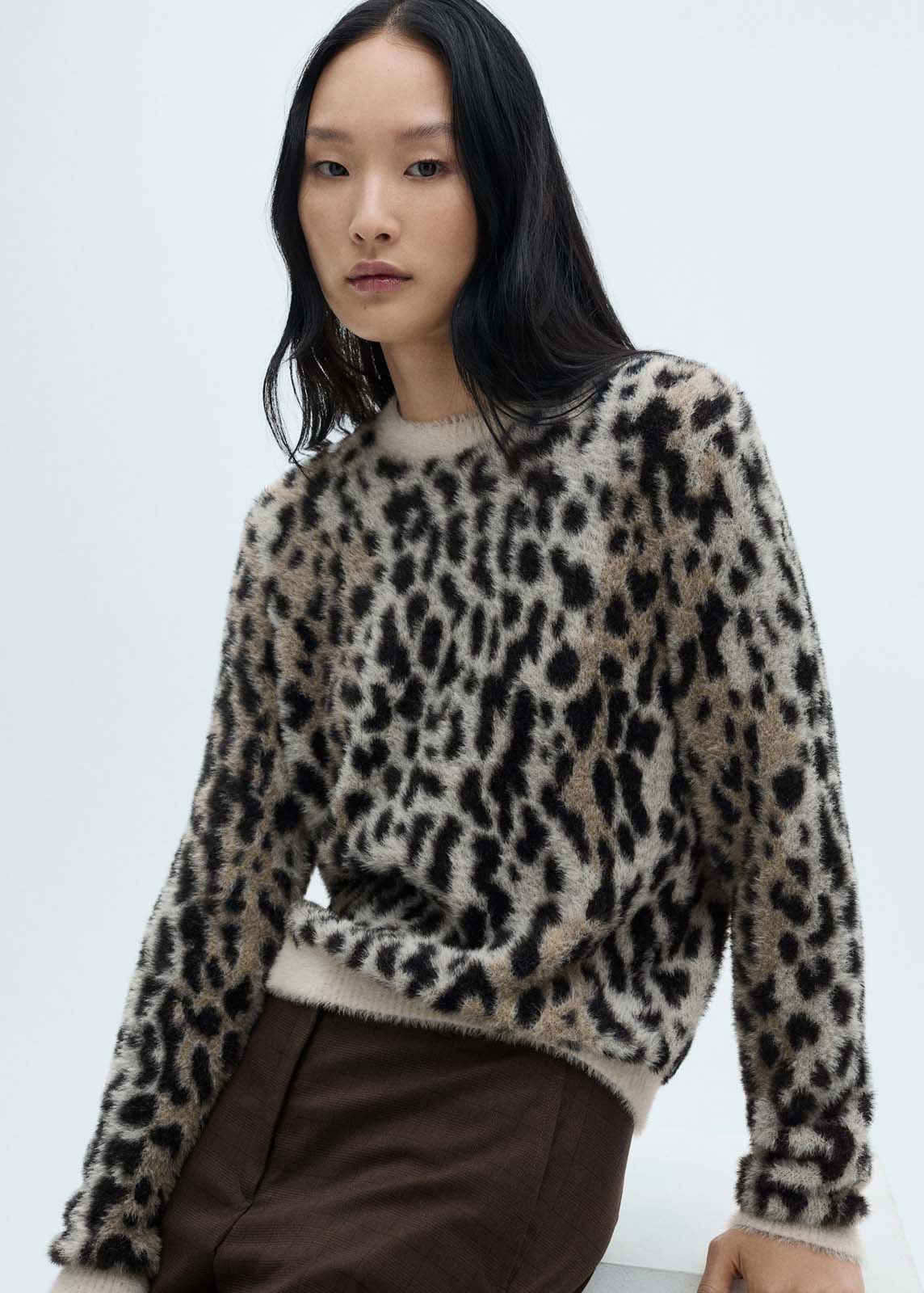 Diseño estándar,Efecto pelo,Terminaciones en contraste,Estampado animal print,Sin cierre,Cuello redondo,Diseño recto,Estampado de leopardo,Tejido de punto medio,La modelo mide 1,75 y lleva una talla S/36,Manga larga