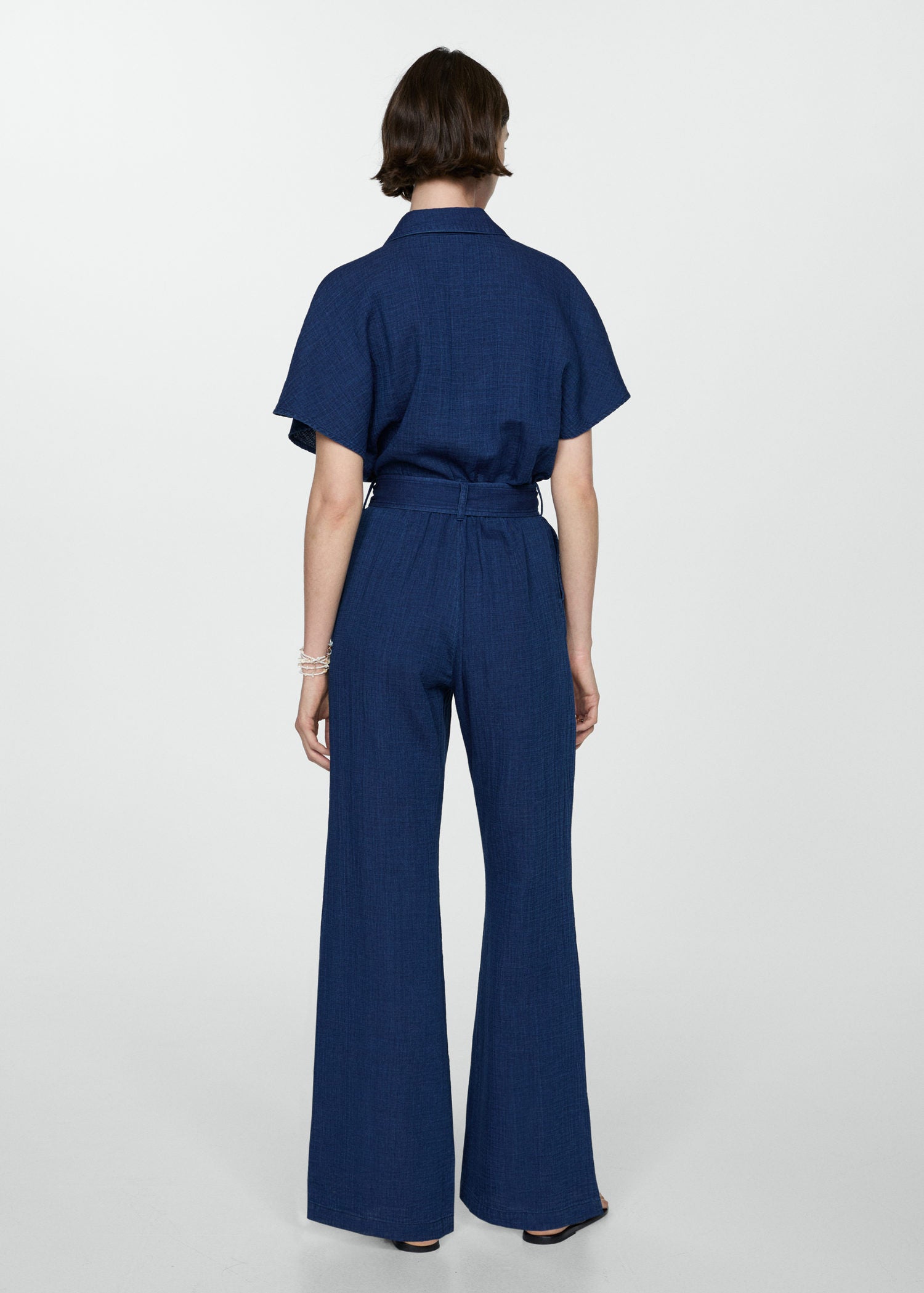 Tejido de algodón estilo tejano vaquero,Cuello camisero,Diseño recto,Estilo camisero,Diseño largo,Cinturón desmontable,Cierre de botón en la parte delantera,Manga corta acampanada,Disponible Plus,Tejido de bambula
