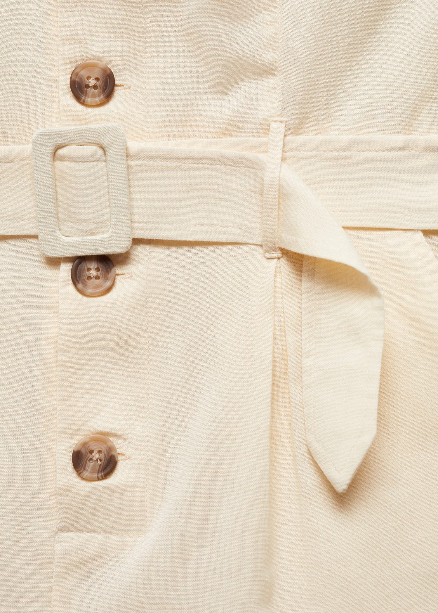 Tejido mezcla de algodón,Diseño recto,Escote cuadrado,Cierre de botones en la parte delantera,Tirantes anchos,Trabillas,Cinturón desmontable,Diseño corto,Dos bolsillos de solapa en la parte delantera