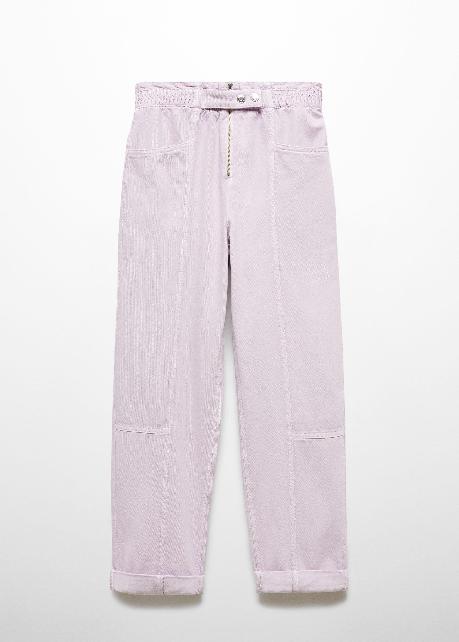 Tejido de algodón estilo tejano vaquero,Diseño crop,Cintura elástica,Tiro alto,Cierre de cremallera y botones a presión,Bolsillo de parche en la parte posterior,Dos bolsillos delanteros,Fit slouchy,Largo interior 70 cm,La modelo mide 180 y lleva una talla 36