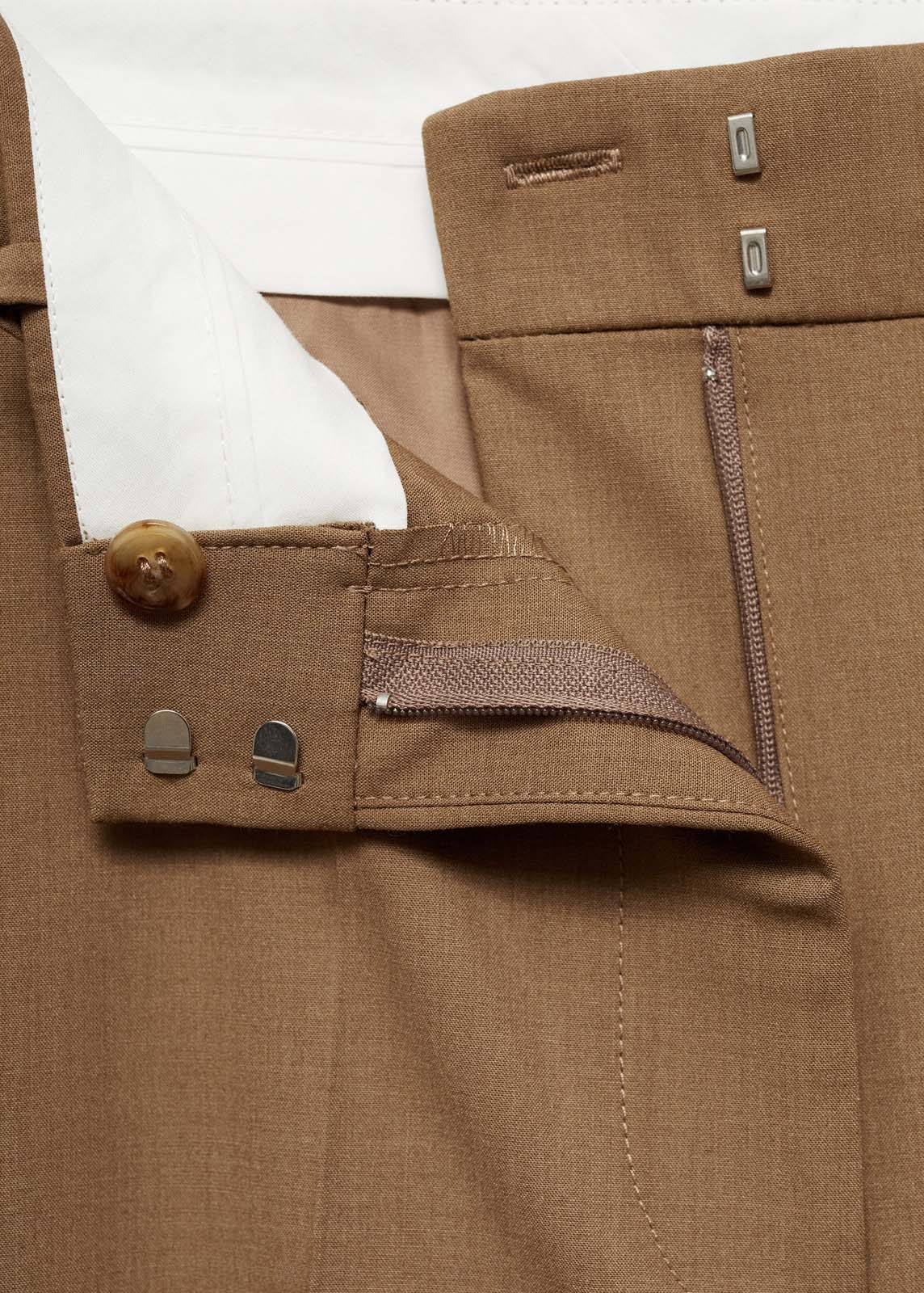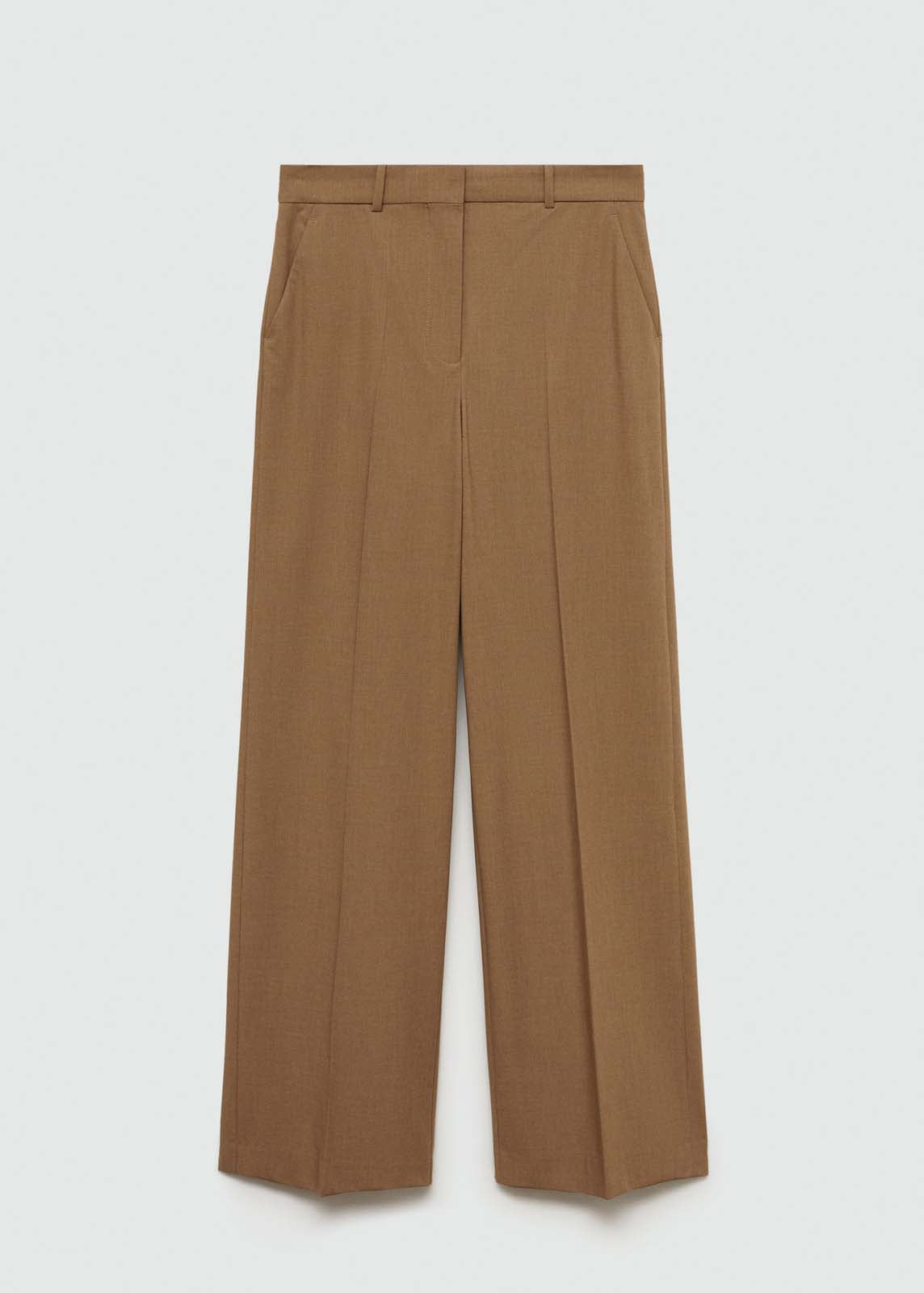 Diseño wideleg,Trabillas,Tejido fluido,Detalle de pinzas,Dos bolsillos laterales,Cierre oculto de botón, gancho y cremallera,Total look,Estilo traje,Diseño largo,La modelo mide 1,77 y lleva una talla S/36