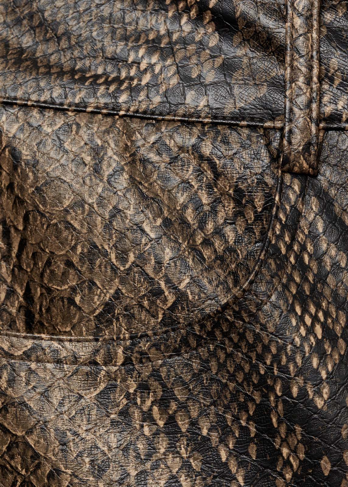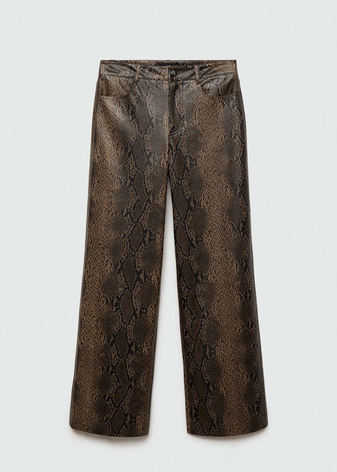Trabillas,Tiro medio,Efecto piel de serpiente,Dos bolsillos laterales,Diseño recto,Diseño largo,Cierre delantero de cremallera y botón,La modelo mide 1,78 y lleva una talla S/36