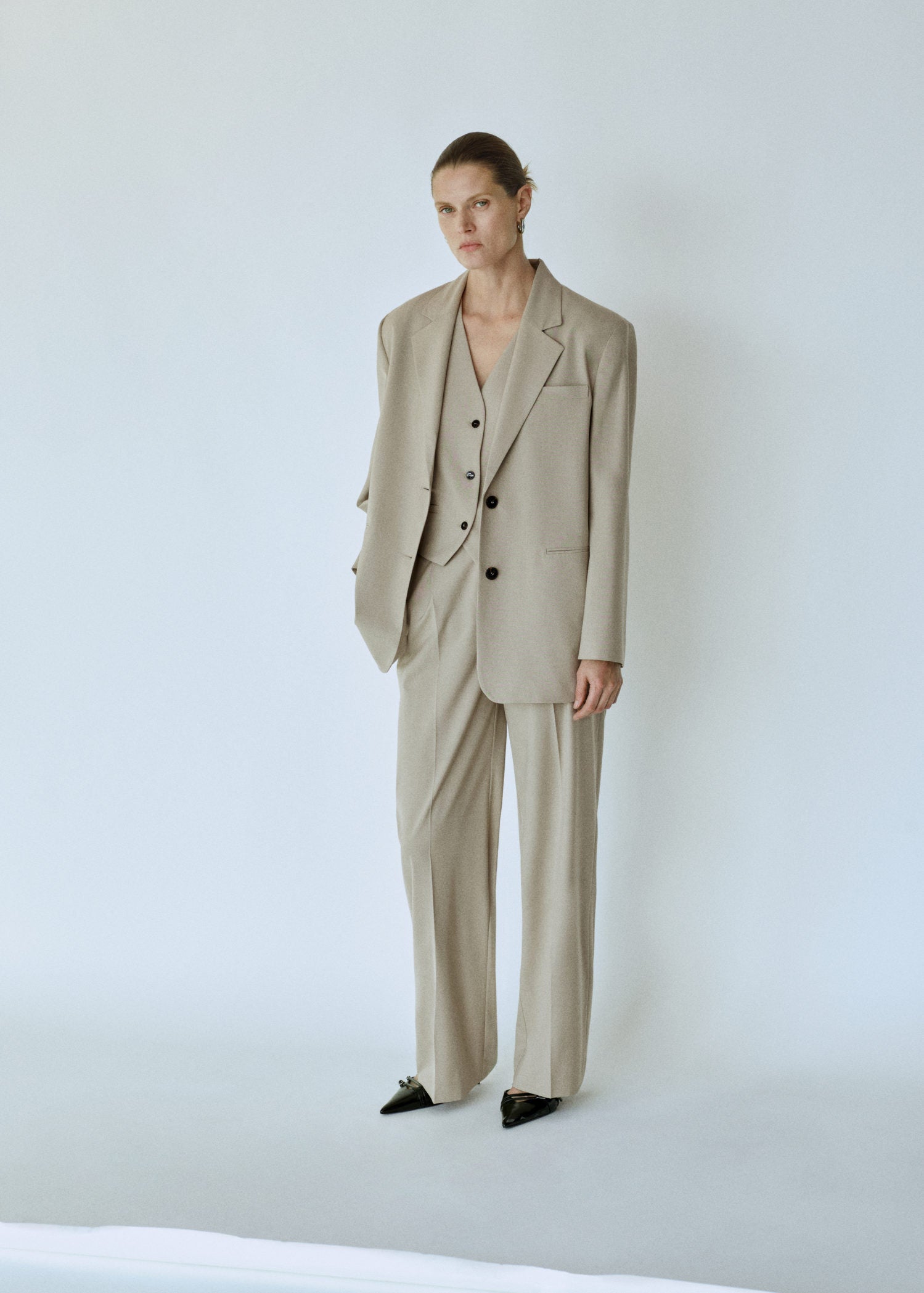 Forro interior,Trabillas,Dos bolsillos laterales,Cierre oculto de botón, gancho y cremallera,Tiro medio,Diseño wideleg,Estilo traje,Total look,Looks de oficina